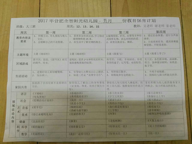 五月份月计划