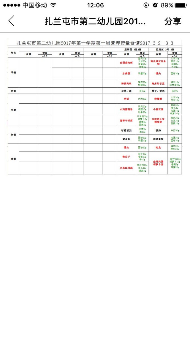 扎兰屯市第二幼儿园第一周食谱