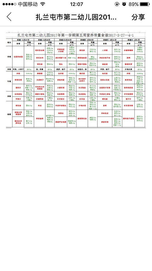 扎兰屯市第二幼儿园第五周食谱