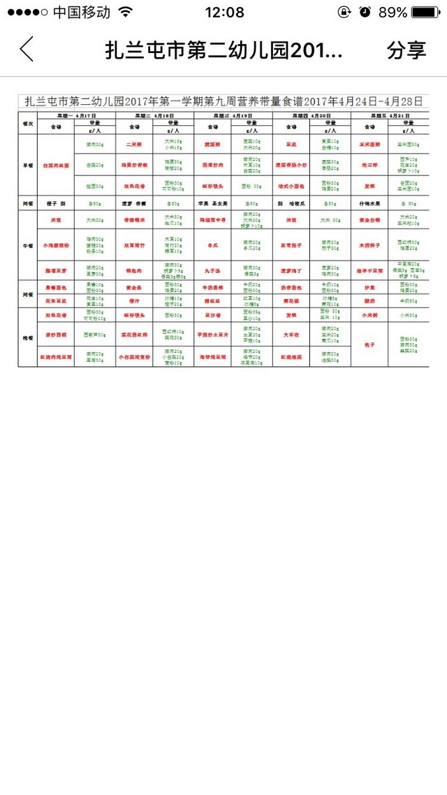 扎兰屯市第二幼儿园第九周食谱