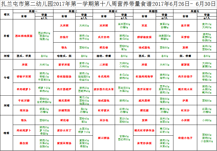 第18周食谱