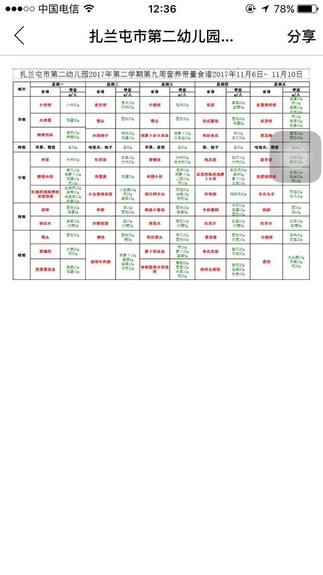 11月第三周食谱