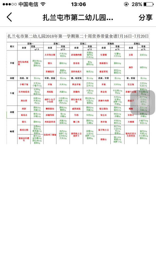 7月16日到20日食谱