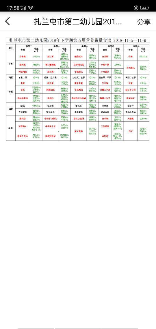 十一月第一周食谱
