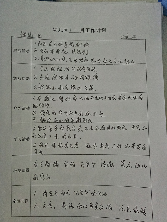 11月教学计划