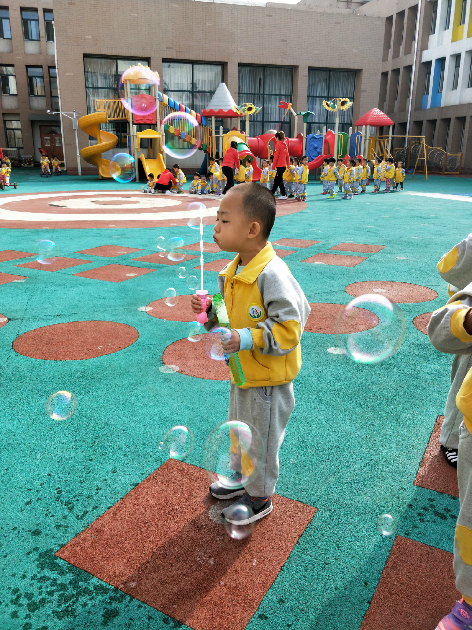 吹出一串串五颜六色的泡泡