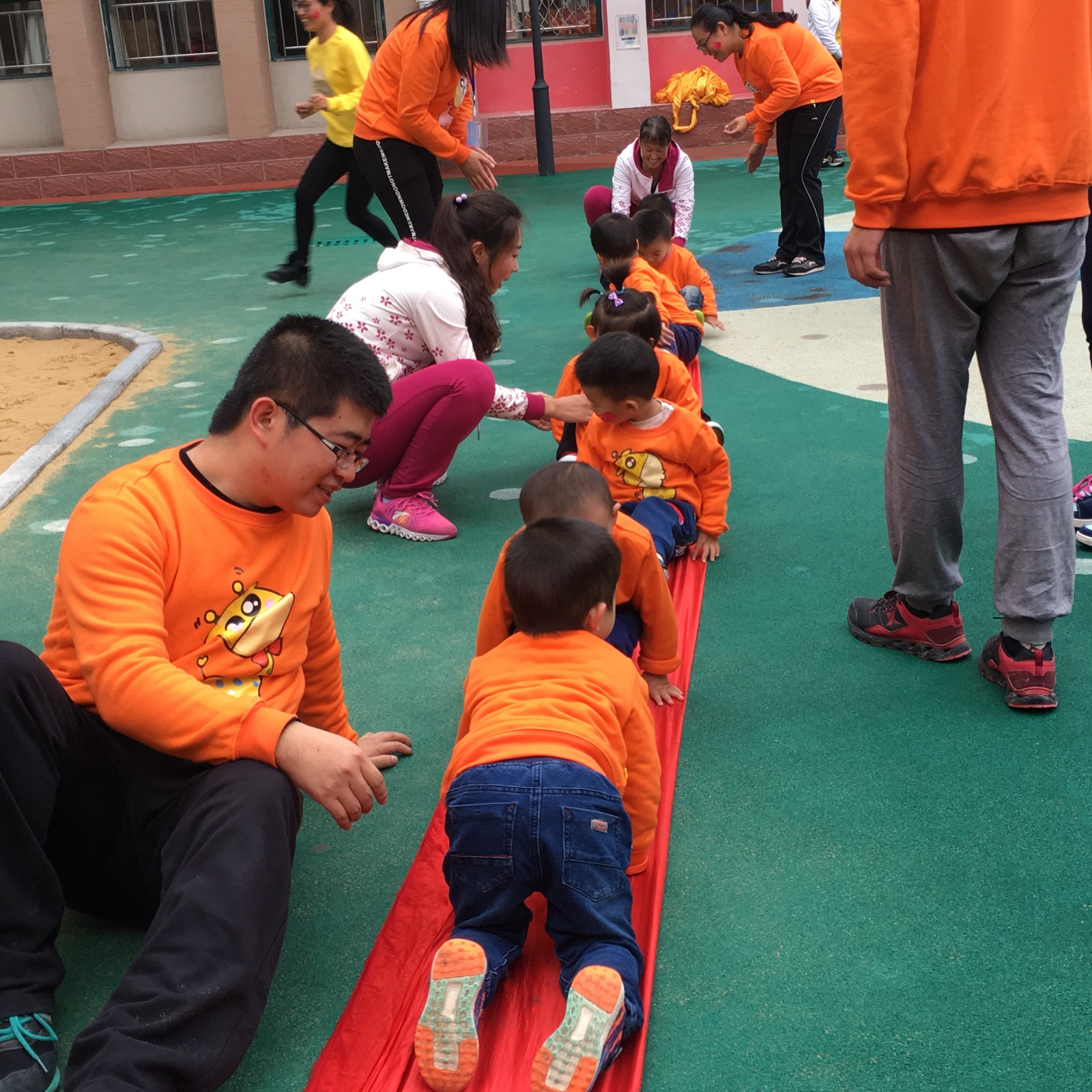 爸爸为了鼓励我和我一起往前爬