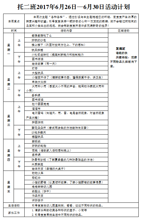 托二班6月第五周教学计划