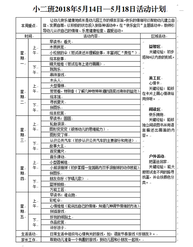 2018年5月第3周周计划