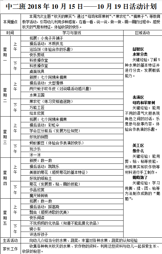2018年10月第二周周计划
