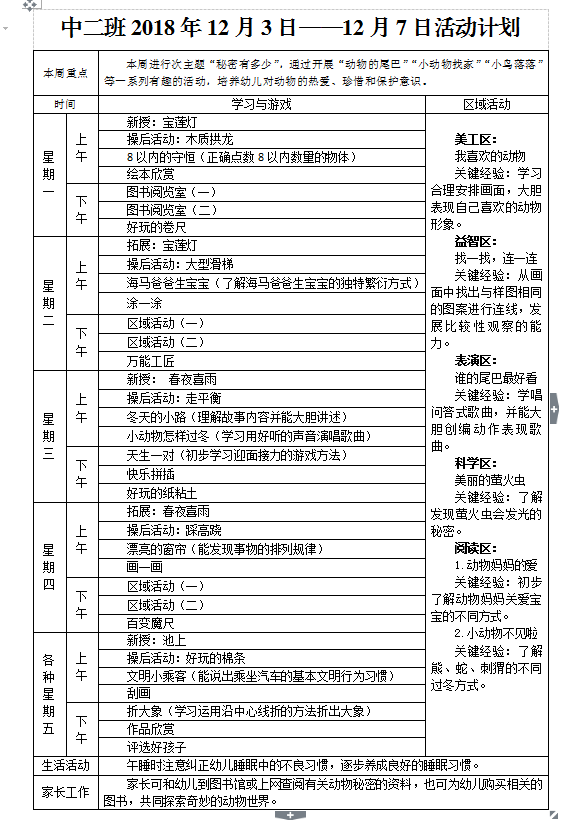 2018年12月第一周周计划