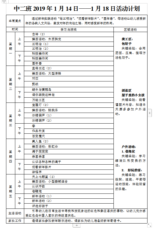 2019年1月第三周