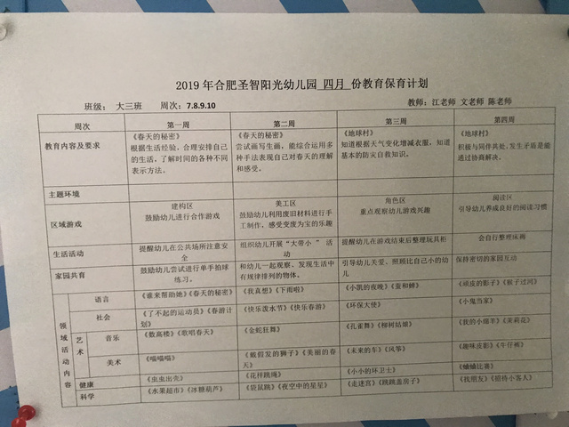 四月份月计划