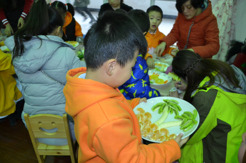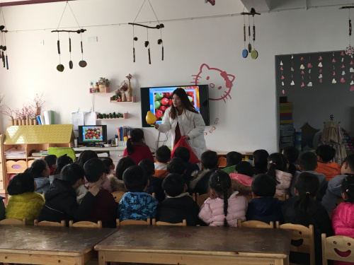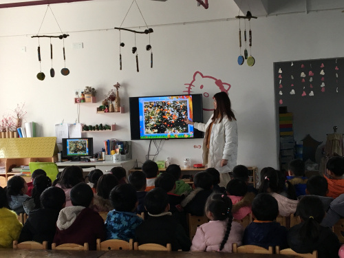 生成背景: 近段时间由于换季的原因,园里在给幼儿准备餐点的时候,买来的水果和以前的大不一样了,换成了秋季水果苹果、橘子、香蕉等,在吃水果时一些孩子常常端着手里的水果碗不肯先吃,总是问个不停,这个问:老师,今天怎么不吃哈密瓜?那个问:老师,这里能吃吗?还有的问:老师,今天的水果是酸的还是甜的?面对这些关于水果的问题,让我联想到我们班的主题活动正好进行的是秋天的收获,因此开展了“秋天的水果”主题活动。通过这样的活动课让幼儿认识了解几种常见的秋季水果,感知秋天几种水果的基本特征,了解多吃水果的好处。为幼儿创造动脑、动手的活动机会,让他们体验动手参与活动的乐趣和分享成功的喜悦。在活动中锻炼幼儿动脑、动口、动手能力的培养。 活动一:社会《秋天的水果》 活动目标: 1、知道秋天是水果丰收的季节,感受秋天里丰收的水果多种多样。 2、引导幼儿通过多种感官感知几种水果的色、香、形、味,了解水果的基本特征。认识到吃水果的好处。 3、能在集体面前大胆地表达自己在活动中对水果的认识和活动体验、感受。 活动重难点: 重点: 培养幼儿运用感官积极主动的感知水果的各种特征。 难点: 活动中能用比较恰当的语言讲述自己的观察结果和活动感受。 活动准备: 装有各种水果的布袋一个,秋天各种水果成熟的丰收画面、水果去皮、切割前后的对比画面等图片收集课件;水果刀一把,每组洗好的各种水果一盘。水果娃娃图片。 活动过程: 一、组织活动 音乐律动“摘果子” 二、创设情境,激发幼儿参与活动的兴趣。 1、小朋友,现在是什么季节?(秋天)秋天到了,大自然发生了很多变化,今天老师要带小朋友参观一个美丽的好地方。(大屏幕播放,展示各种水果挂满枝头,果园里一片丰收景象。) 2、师:谁来告诉老师,我们刚才参观的美丽地方是哪里?(果园)你是从哪里看出是果园的?(很多果树和成熟的水果) 教师小结:秋天是水果丰收的季节,秋天里丰收的水果多种多样。三、小组交流,初步认识水果的颜色和形状 1、小组交流:我们刚才参观了秋天的果园,现在请大家互相说一说,讲一讲自己在果园里都看到了什么水果,它是什么样子? 2、(大屏幕慢播)鼓励幼儿向大家介绍自己参观时看到的水果,能简单说出水果的名称、颜色或形状。如:苹果红红的、圆圆的;香蕉黄黄的、弯弯的;葡萄是一串一串 3、小朋友看到了这么多水果,老师把他们请到我们班级来做客好不好?(教师一边粘贴水果娃娃图片一边说儿歌:红红的大苹果请进来;弯弯的香蕉请跟来;黄黄的大鸭梨快进来;圆圆的橘子走进来;成串的葡萄快快来。) 4、我们来数一数老师一共请来了几位客人。(引导幼儿点数黑板上的水果图片。) 四、开展游戏,进一步感知水果的特征 1、师:瞧!老师这里有一个神奇的大布袋,小朋友想知道里面装的是什么吗?我们来摸一摸,猜一猜。 2、教师一边请幼儿上来摸口袋里的水果,一边说顺口溜:布袋布袋真神奇!里面藏着好东西。摸一摸,猜一猜!猜对啦,奖励你! 3、猜一猜你摸到的是什么?你是怎么知道的?鼓励幼儿根据自己摸的感觉从水果的形状、大小、触感等方面进行比较分析猜出水果的名称。(如;又圆又硬的是苹果;又圆又软的是橘子;弯弯的、长长的是香蕉;一串一串的是葡萄) 4、师:布袋布袋真神奇!里面藏着好东西。拿出来,看一看,圆圆的苹果送给你;布袋布袋真神奇!里面藏着好东西。拿出来,看一看,软软的橘子奖励你;布袋布袋真神奇!里面藏着好东西。拿出来,看一看,弯弯的香蕉送给你;布袋布袋真神奇!里面藏着好东西。拿出来,看一看,成串的葡萄都给你!(指导幼儿拿出摸到的水果,再次利用顺口溜帮助幼儿加深对水果特征的巩固) 五、再次探索,运用感官进一步认识和感知水果的特征 1、小朋友认识了不同的水果娃娃,知道了他们外面是什么样的,那你们想不想知道水果娃娃的里面是什么样子的?大家请看!(大屏幕播放,分别展示水果去皮、切割前后的对比画面,引导幼儿观察比较。) 2、小组合作,动手操作,分别把不同的水果进行剥皮、切割做成简单的水果拼盘。教师一边指导幼儿操作一边引导幼儿观察比较,并相应的渗透安全卫生教育。 3、鼓励幼儿说一说在刚才的动手操作过程中你发现水果里面有什么不同?你知道每种水果的哪部分可以吃?教师小结让幼儿知道水果是由果皮、果肉和果核几部分组成的。 六、品尝水果,进一步感知水果的特征。 师:小朋友真能干,用我们的小手制作的水果拼盘真好看,果盘里多种多样的水果真香啊!你们闻到水果的香味想吃吗?让我们一起来品尝一下我们亲手制作的水果拼盘吧! (1)幼儿自由选择水果进行品尝。 (2)说一说,你吃的是什么水果?你吃的是水果的哪部分?吃起来有什么感觉? 七、交流讨论,拓展幼儿有关水果的经验。 1、你喜欢吃水果吗?为什么?引导幼儿了解多吃水果的好处。水果营养丰富,促进身体健康;可以解渴。 2、除了今天认识的这几种水果,你还吃过哪些水果? 3、你还知道水果还可以怎样吃?(水果可以制作果干;水果罐头;榨果汁;还可以酿酒等。) 活动延伸: 幼儿自由选择活动区角自由创作、游戏(图形拼摆、绘画、泥工制作水果娃娃以及利用水果玩具玩水果店等多种游戏活动。)