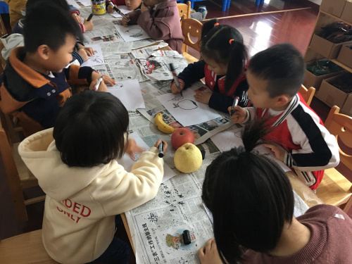 活动反思: 本次活动我引导幼儿由外到内认识了各种水果,通过观察、触摸、品尝认识了水果的种类,感知水果的颜色、形状、味道。丰富了幼儿的认知。活动中幼儿敢于表现,热情大方与人交往,培养了幼儿的兴趣及合作。考虑到中班孩子的年龄在四到五,已经有了一定的动手及独立思考能力。也有一定的探索、创新意识。所以,在设计活动时,有意在有些拼盘上加大难度,激发幼儿的尝试欲望。在活动中,我尊重孩子的各种想法,哪怕拼出来不一定好看。有你看得懂的,有你看不懂的;有精致的、有粗糙的;但他们都拼得那么投入、那么认真。完全被他们的想象征服了。孩子们用他们稚嫩的语言说明了他们天马行空的各种想法。整个活动孩子们都在愉快、积极的氛围中进行。最后孩子们都和自己的作品合影留恋,体会到成功的快乐和喜悦。 孩子们对水果的认识已有一定的经验,对水果的营养价值也有了初步的了解。在这次写生过程中,难点在于表现出重叠关系,以孩子们最熟悉的水果为写生对象,既增加了幼儿的作画兴趣,又发展了幼儿的想象和创造能力。 |
