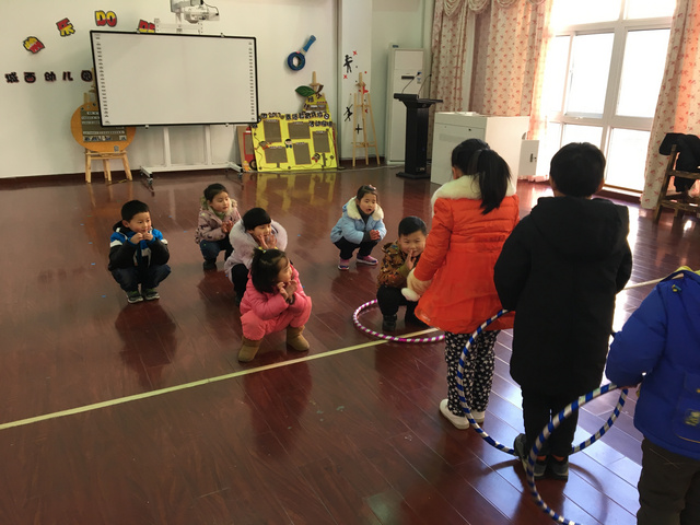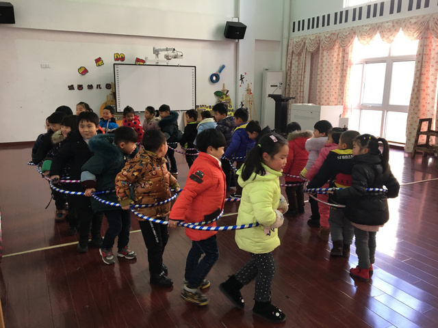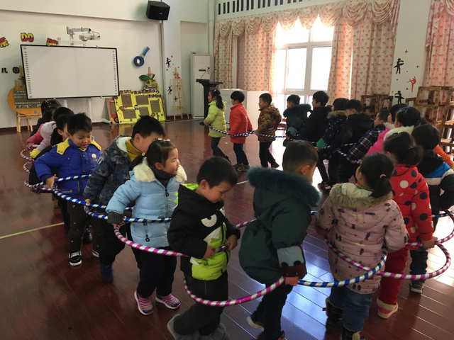 游戏背景: 呼啦圈转起来,但是当我们小朋友们都穿上厚厚的衣服的时候,呼啦圈就转不起来了。那么,难道我们就不能玩呼啦圈了吗?中大班的小朋友们都发出了这样的疑问。但是,今天我们就一起来探索一下吧!让我们看一看呼啦圈除了可以转起来之外还可以怎么玩,中大班的小朋友们发挥了自己才智,想了许多关于呼啦圈的不同玩法。 游戏目标: 1、探索呼啦圈的不同玩法,从而体验一物多玩的乐趣。 2、在游戏中,让幼儿体验相互竞争、相互合作的快乐。 3、在游戏中锻炼幼儿的双脚的蹦跳能力和身体的反应能力。 游戏准备: 呼啦圈、多功能厅 游戏玩法: 1、我会投:请几位小朋友蹲在地上变成小花,然后让其他的小朋友排队将呼啦圈套到小朋友身上。