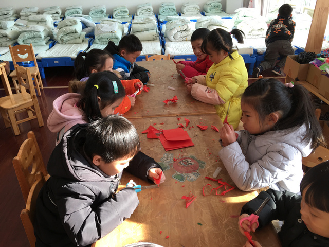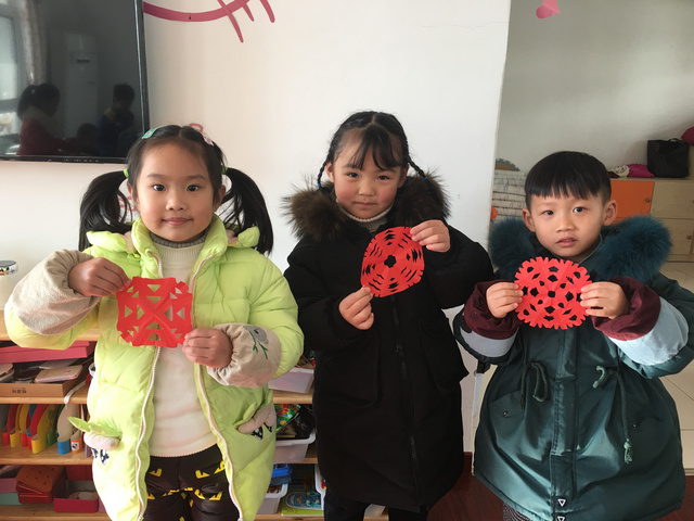 贴窗花是古老的传统节日习俗,新春佳节时,中国许多地区的人们喜欢在窗户上贴上各种剪纸窗花。窗花不仅烘托了喜庆的节日气氛,而且也为人们带来了美的享受。 今天我带领孩子们也进行了“剪窗花”的活动。孩子们看到一张张方方正正的纸通过小剪刀卡擦卡擦的剪剪剪变出了一个个美丽的窗花,兴奋极了! 窗花以其特有的概括和夸张手法将吉事祥物、美好愿望表现得淋漓尽致,将节日装点得红火富丽、喜气洋洋。过新年,就应该红红火火,孩子们纷纷投入到剪窗花的活动中啦! 通过贴窗花的活动,孩子们感受到了中国传统节日带来的喜庆,孩子们在“贴窗花,过大年”的活动中乐此不疲,意犹未尽!
