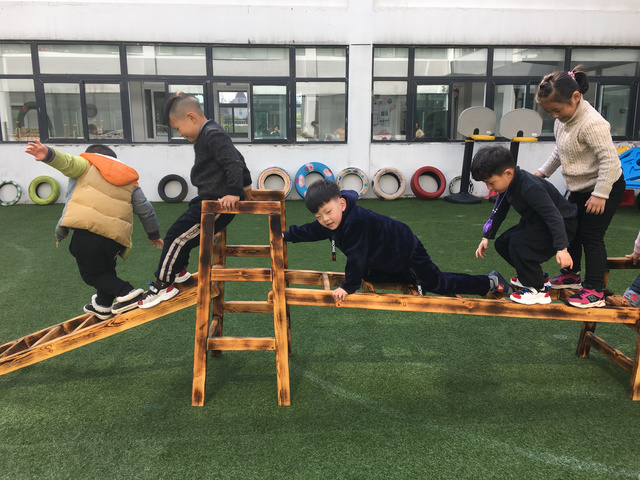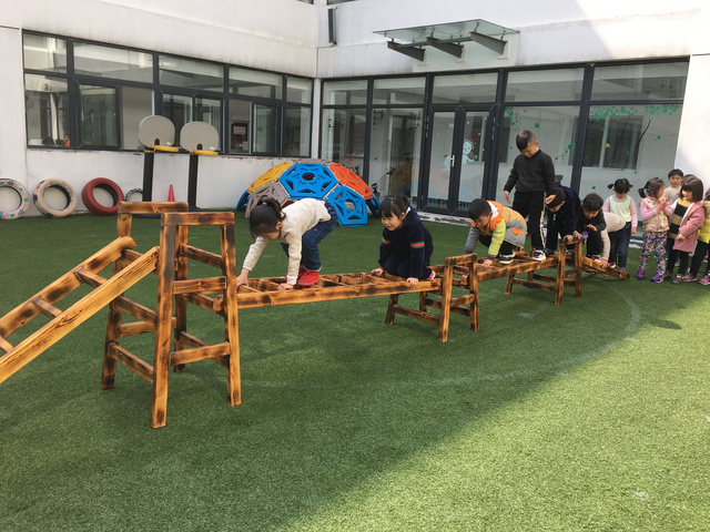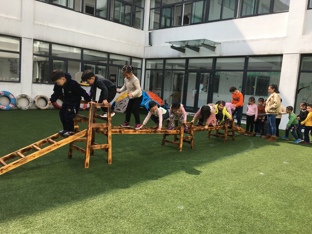 天气晴朗,阳光灿烂,趁着午后的好时光我带着孩子们玩起了爬梯子的游戏。碳化积木梯是孩子们喜欢的户外游戏,听到这个消息孩子们开心地跳起来了! 游戏开始了,孩子们在老师的引导下几个人一起合作将碳化积木梯拿出来有序的排着队,一个跟着一个玩起来了。有些孩子动作比较快,一会儿就爬上了梯子,就催促着前面的小朋友,这时候我请小朋友讨论“如果你在爬梯子有人总是催你这样好么?”孩子们纷纷讨论起来,最后大家一起制定了游戏规则——“玩梯子的时候催促别人的小朋友就停玩一次。”孩子们制定了规则,游戏玩得特别顺利!开始孩子们是爬着过梯子,慢慢的孩子们的胆量大了,他们尝试这站起了过梯子了,脸上露出了自信的笑容! 碳化积木游戏不仅锻炼了孩子们的胆量和身体平衡协调能力,同时在游戏中也培养了孩子们的合作、共同商量的学习品质!