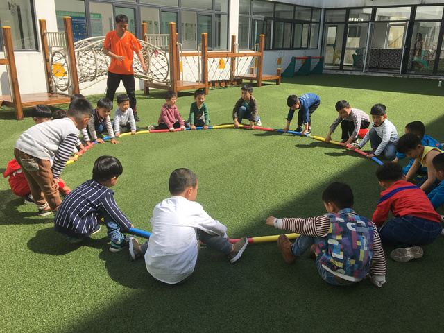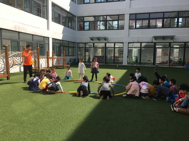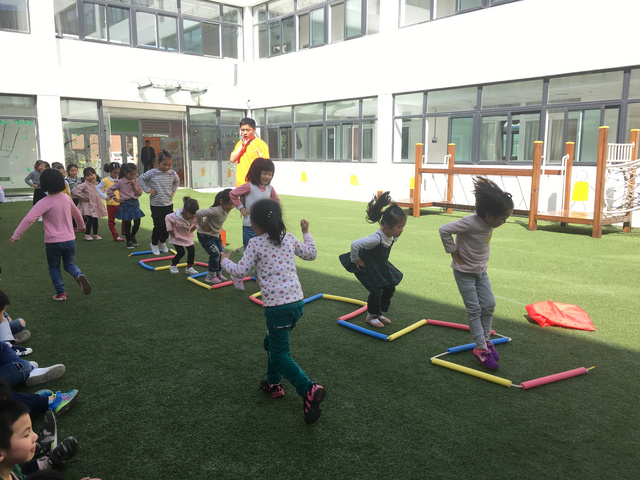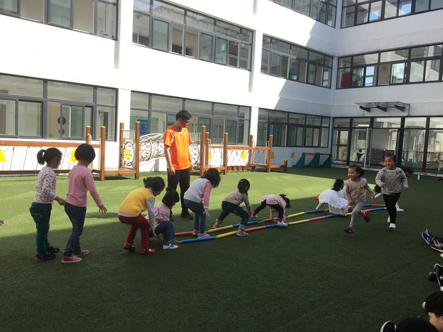 宝贝的话:今天班上来了一位不一样的老师——花生哥哥,花生哥哥是一位身材高大活力四射的男老师,他今天要带我们玩一个有趣的“面条棍”游戏,什么是面条棍呢,原来是用一截截泡沫穿起来的小棒子,看上去很有趣呢! 活动之前花生哥哥带着我们进行热身,动动小手,动动小脚,身体一下子活动开来! 活动中,花生哥哥利用有趣的情境故事吸着我们——莱德队长收到了一封求救信,要去森林里解救一位老爷爷,但是通过森林我们必须穿过长长的隧道,跳过小桥,拿到三把钥匙就可以顺利过关了。 看我们在勇敢的闯关了! 在花生哥哥的鼓励和指导下我们顺利的进入森林,拿到三把钥匙,解救计划成功啦! 老师的话:孩子们非常喜欢花生哥哥带来的体育游戏活动,活动新颖有趣并将有趣的故事情境融入其中,游戏中孩子不仅玩得开心快乐而且身体动作技能也得到了发展。同时,花生哥哥的活动也给我们老师带来了新的思考,新的理念,在学习中获得专业成长!