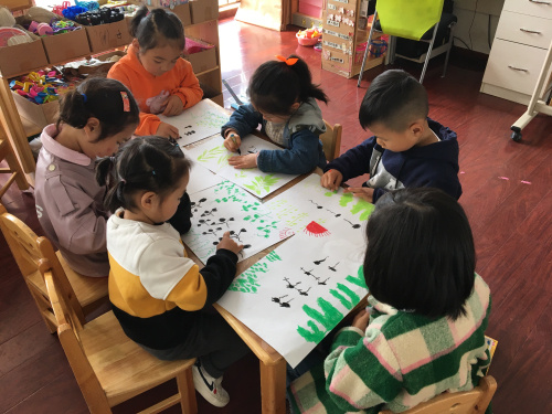 4、请个别幼儿上前示范,并请其他幼儿说说是怎么画的?
