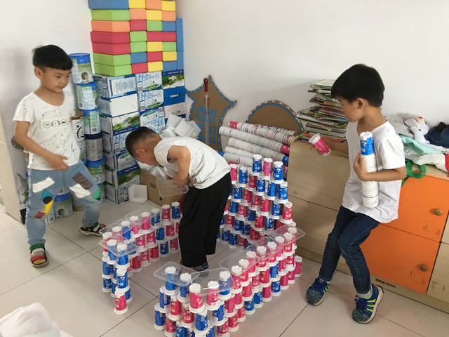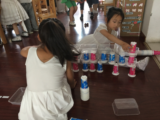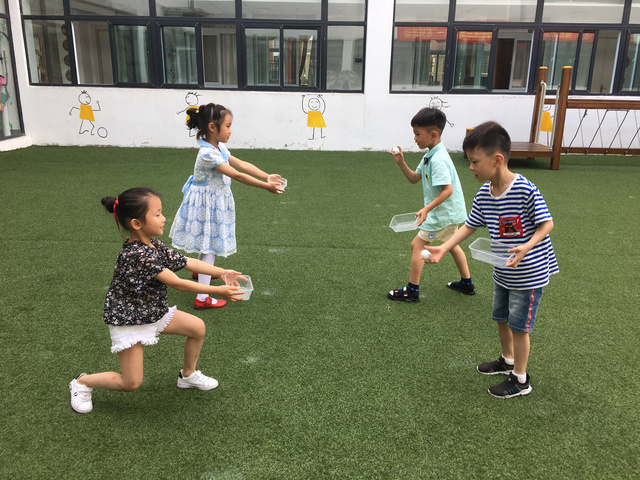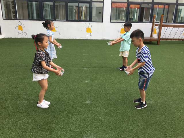 游戏创设背景: 塑料盒子是我们日常生活中常用的物品,对于孩子们来说盒子不仅仅是盒子,它还可以作为好玩的游戏材料。因此,我设计了这次“盒子乐翻天”一物多玩的活动。利用塑料盒子的特点,鼓励幼儿探索、掌握用盒子来锻炼身体的各种方法,发展幼儿基本动作,促进幼儿各种基本动作的协调性和灵敏性。培养幼儿勇于创新的精神,激发幼儿参与身体锻炼活动的兴趣。 游戏目标: 1、探索用盒子来锻炼身体的方法,发展动作的协调性和灵敏性。 2、培养运动中的合作能力,激发幼儿玩盒子的兴趣。 游戏准备: 盒子、乒乓球、运动场地 游戏玩法: 1、你抛我接:幼儿俩俩合作,每人手持一个塑料盒,游戏开始时,由一位幼儿抛出乒乓球,对面的位幼儿则用盒子去接球,一分钟内接到球最多的一组为胜。 2、戴帽子:幼儿分成两组,进行“戴帽子”比赛的游戏。幼儿分别头戴帽子即空盒子,然后进行直线和障碍物行走游戏。 3、拼搭乐:利用盒子的特点与其他建构材料进行建构活动。幼儿可以将盒子进行平铺、围合、垒高等进行造型拼搭。 游戏反思: 本次游戏导入富有趣味性,孩子们很感兴趣,游戏的积极性较高。在自由探索盒子的过程中,孩子们能自主探索其各种玩法。幼儿对于这个活动比较喜欢,都参与其中,玩得很开心。部分幼儿不能很好地控制身体的动作,投扔不够协调,因此在这一方面,今后可带幼儿多多练习,提高幼儿的投掷能力!