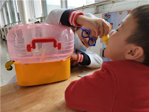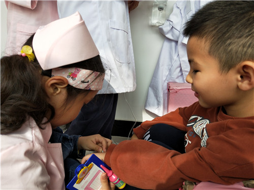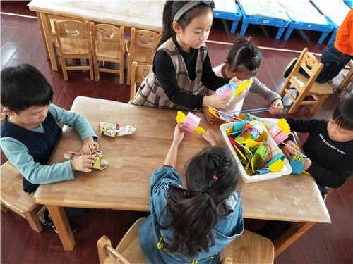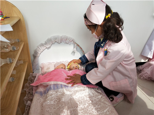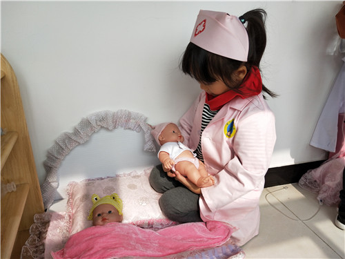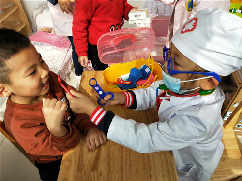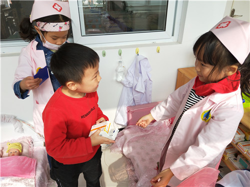 区角是一个可以丰富幼儿在园生活,让孩子可以根据喜好自由选择、自由创造的地方,也是教师根据近期学习的内容延伸投放适宜器材,巩固幼儿知识的好地方。 本月,我们根据大中国的主题开展了丰富的教学活动,在区角,我们也根据主题进行了材料的投放。 美工区:我们投放了各色卡纸、记号笔、油画棒、水彩笔,引导幼儿制作国旗和送给爷爷奶奶的礼物; 阅读区:投放《地大物博的中国》 、 《中国古代建筑》 ,带孩子了解中国; 科学区:投放操作材料-----苹果、小鱼等,让孩子进行分合操作,巩固2、3、4的分合; 建构区:运用酸奶瓶搭建我们的大中国; 角色区:投放医生、护士服装、听诊器、吊瓶等材料,让孩子在角色扮演中锻炼说话的能力。 区角活动是孩子们平日里最期待的地方,身为教师要好好利用好这些区域,根据孩子的最近发展区,结合月主题和节日活动及时更新材料,让孩子在快乐游戏的同时也能学到新本领。