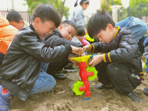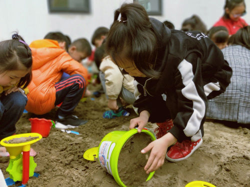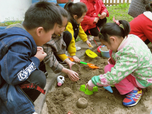 沙子的独特之处在于,它能充分调动每一个孩子的想象力,让他们尽情地发挥自己的创造性,而这一点正是其他任何一种成型玩具所不具备的。并且在玩沙的同时,孩子们培养了合作、探索的精神,又不知不觉地锻炼了身体,开发了智力。孩子们在这块沙地里能够充分发挥自己的想象力,玩儿得非常尽兴。 |