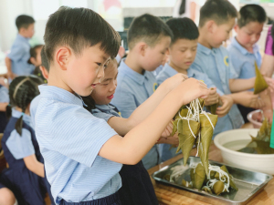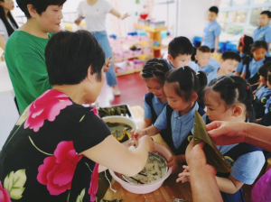 “艾叶清清棕米香,千年一祭是端阳。”每年农历的五月初五是我们的“端午节”。端午节是我国的传统节日,赛龙舟、吃粽子、戴香囊、插艾叶等这些都是中华民族历史长河中传统文化的积淀。为了让这些优秀的文化得到传承,并让孩子们直观地了解和体验端午节,过一个有意义而又难忘的节日,在端午节到来之前,大一班开展了“浓浓端午节 深深棕香情”主题教育活动。 活动中,结合多媒体课件引导幼儿了解端午节的由来、习俗等;根据幼儿的年龄特点,设计出了丰富多彩的活动。幼儿根据老师提供的材料自制出了可爱的粽子;在家委会的大力支持下,组织幼儿观看奶奶们包粽子,下午幼儿在一起品粽子,每一位孩子都沉浸在欢乐之中。