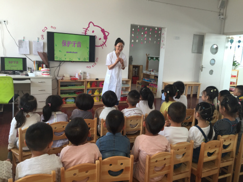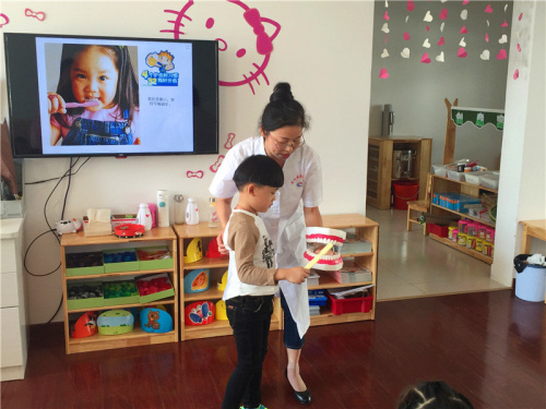 “你刷刷,我刷刷,牙齿刷得白又亮。”伴随着儿歌迎来了9月20日的全国爱牙日,为了让小朋友们及家长了解更多与牙齿有关的知识、学会正确的保护牙齿的方法,幼儿园结合主题“保护牙齿,从我做起”开展了一系列“爱牙”教育活动。 根据幼儿的年龄特点相继开展了一系列的教育活动,在《我来刷刷牙》活动中,孩子们在老师的指导下,非常认真的刷牙,下面牙齿往上刷,左刷刷、右刷刷,里里外外都刷刷, 刷得干净没蛀牙。这些操作性、互动性较强的主题活动收到了很好的宣教效果,使孩子们懂得了更多关于口腔和牙齿的知识,掌握了正确的护牙方法。 活动中幼儿园保健医生向孩子们讲解了牙齿的结构、作用,介绍爱护牙齿的重要性以及如何保护自己的牙齿,示范正确刷牙的方法。引导幼儿早晚正确刷牙,帮助孩子们从小养成爱牙护牙的良好习惯。 此次“爱牙日”的一系列活动,使幼儿更深刻地理解口腔卫生和保护牙齿的重要性,增强了口腔健康观念和自我口腔健康的意识,从小建立口腔健康的行为,促进儿童身心健康和谐地发展。
