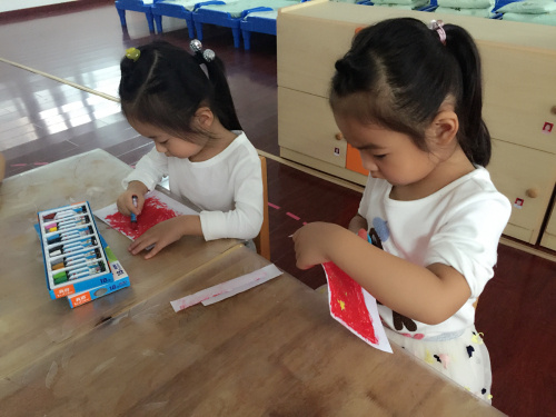 金秋十月,丹桂飘香,我们迎来了祖国妈妈67岁生日, 面对生活在“甜蜜生活”的幼儿来说,“ 十月一日”只是一个盛大的节日,可以休息7天,有好吃的、好玩的,到处都很热闹。但是对这一节日的实际意义还不能深入了解。为了让小朋友知道十月一日是国庆节,并知道国庆节的来历及有关国庆节的一些知识,丰富小朋友的社会知识,我们决定组织小朋友共同参与制作,国庆主题墙的布置活动。 动手制作之前,我引导孩子们仔细观察了五星红旗,旗面的颜色、五角星的大小、数量,还告诉孩子们五星红旗的意义:中间的这颗大星星就是祖国母亲,旁边的四颗小星星就是我们,我们团结在一起,热爱自己的祖国。孩子们自己动手粘贴制作,并把制作好的红旗展示给老师看。 通过这次活动,孩子们加深了对五星红旗的理解,当他们再次看到五星红旗冉冉升起的时候,相信会有和以前不一样的感受,爱国情感在这个过程中慢慢被激发出来。 |
