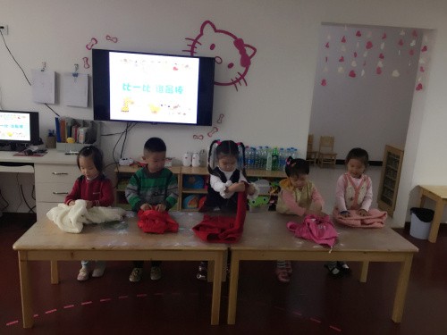 为了让幼儿学会叠衣服的简单生活技能,提高幼儿自我服务意识,小三班开展了“比一比,谁最棒”叠衣服比赛。通过比赛鼓励幼儿尝试自己叠衣服,提高幼儿的动手操作能力。 随着一声口令,小朋友们立即冲上“战场”叠衣服,别看幼儿年龄小,却身手不凡,动作麻利。孩子们一边叠着衣服小嘴里一边说着“衣服放放平,大门关关好,袖子抱一抱,身体弯弯腰。"看来小朋友们都记住了叠衣服的儿歌,真棒!小朋友们也为自己出色的表现而骄傲,孩子们最享受的是比赛过程中的快乐。这样既锻炼了孩子的自主能力,又培养孩子的动手能力。 苹果组小选手: 草莓组小选手: 小朋友们叠的可真棒呀!继续加油会更棒! 相信通过这次活动,会激发幼儿的自我服务意识,并懂得自己的事自己做,提高自己的基本生活自理能力,同时也让孩子们在比赛的过程中享受到成功的快乐!