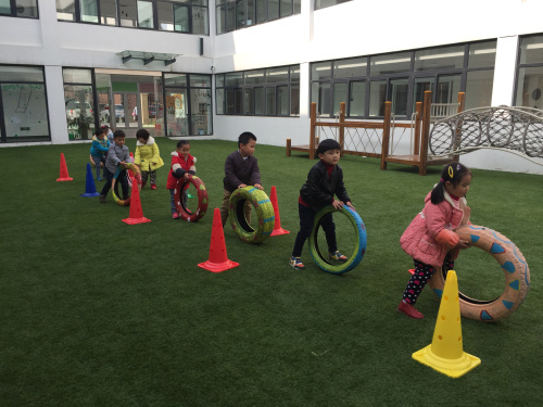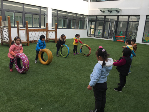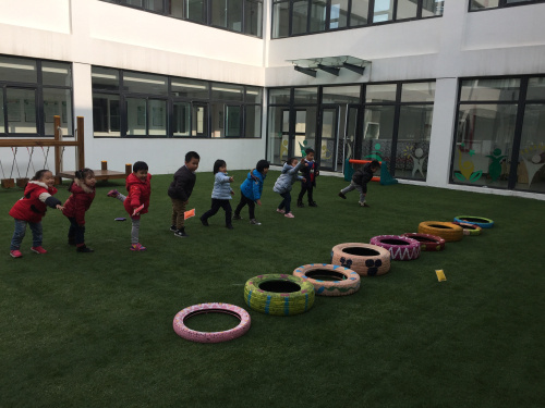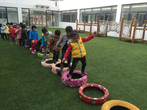 游戏创设背景: “轮胎”是幼儿比较感兴趣的器械,经常看到幼儿拿着轮胎就滚,除了滚轮胎,大部分幼儿不知道怎样玩轮胎了,为了让幼儿在探索的过程中发现轮胎的多种玩法,特设计了《好玩的轮胎》的游戏活动。 游戏目标: 1、练习平衡基本技能,发展幼儿上肢动作、力量和身体的平衡。 2、培养幼儿对玩轮胎和体育活动的兴趣,发展幼儿的自主性和创造性。 3、培养幼儿不怕困难,勇于探险的精神。 游戏准备: 轮胎若干、户外操场、沙包、障碍物、音乐 游戏玩法: (1)滚轮胎:两名幼儿一个轮胎,甲队幼儿将轮胎滚出。乙队幼儿为接轮胎人。当甲队幼儿将轮胎滚出后,乙队上接住轮胎,接住轮胎后交换角色。规则:轮胎要挨地滚动,不能倒下,接轮胎时要注意安全。 (2)运轮胎:幼儿双手抓轮胎内侧,推着轮胎从起点绕过障碍,幼儿通过障碍将轮胎运到终点处获胜。 (3)走轮胎:用轮胎摆成一座小桥,幼儿穿过小桥,过桥时一定要注意安全,不要推,不要扯别的小朋友的衣服,完成后回到原来的地方。 (4)投投乐:幼儿分成九队,进行扔沙包游戏,轮胎当目标,将沙包投进轮胎中。沙包投进轮胎多的幼儿获胜。 活动反思: 轮胎既是孩子们在日常生活中常见的,又是孩子们不容易玩到的材料,也是幼儿比较感兴趣的一种玩具。幼儿是在与材料相互作用中主动学习和发展的,“好玩的轮胎”活动是根据幼儿的身心特点,选择幼儿日常易见的废旧轮胎作为活动器械,并激发了幼儿对活动的探索欲望,从而使幼儿在游戏中主动尝试,大胆想像,创造性地发现了多种玩法。在整个活动中,针对不同能力的幼儿,采用不同的鼓励引导方式,让所有幼儿都能情绪愉快,团结协作地完成游戏,并通过游戏促进幼儿的自主性、创造力的发挥。培养了幼儿勇敢、团结合作的品质,使整个活动独具特色。