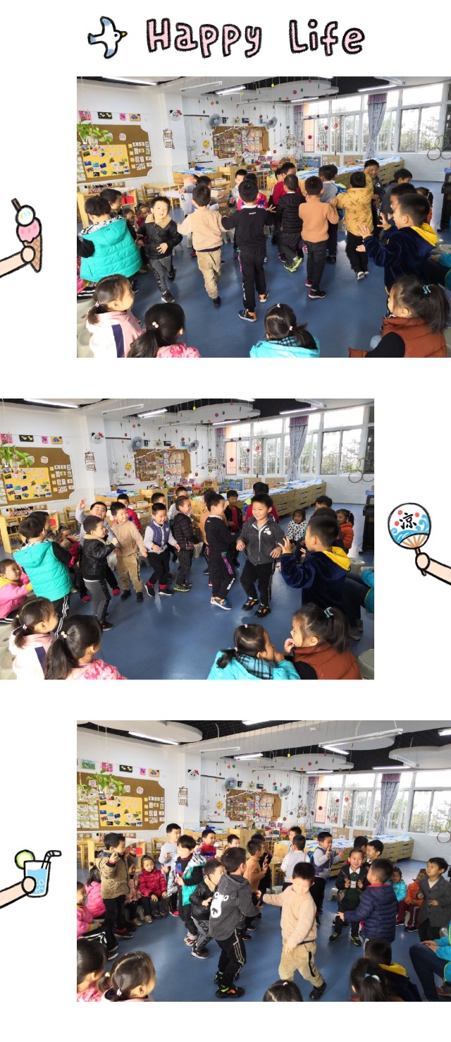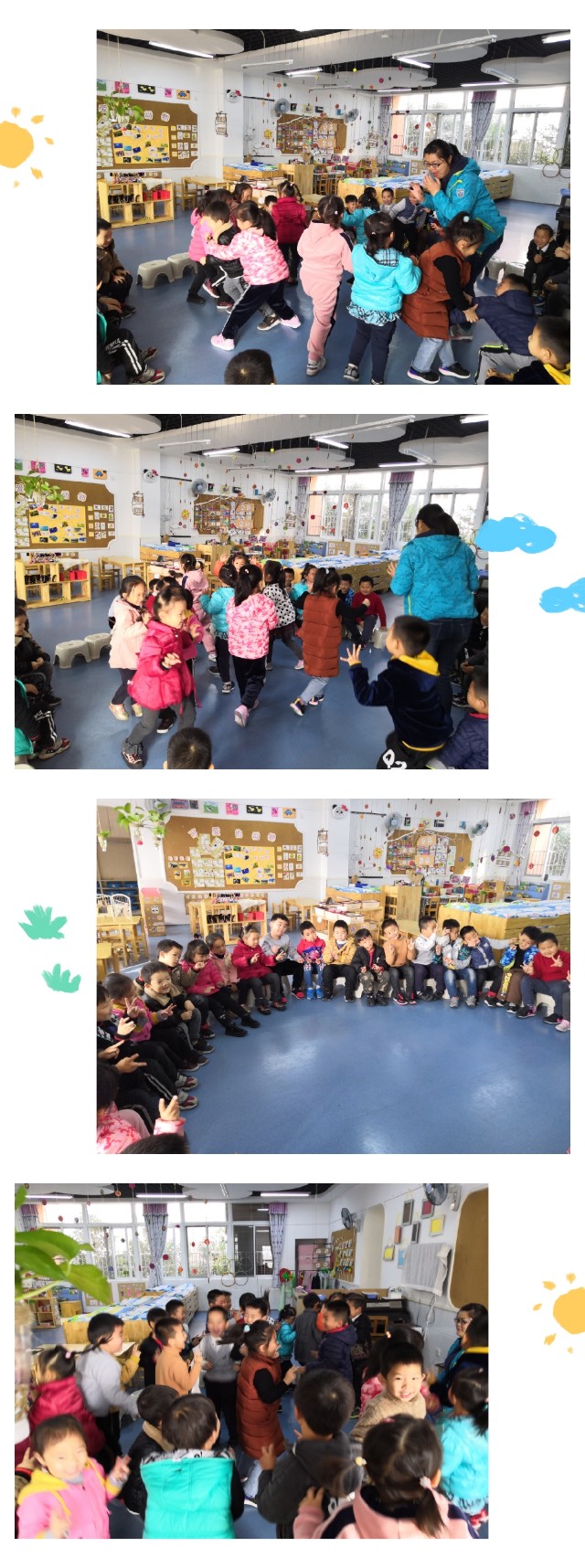 今天开展了一节音乐游戏《小白兔和大黑熊》,首先教师播放音乐,请孩子们辨别音乐分几段,分别是谁在走路?孩子们很快就辨别出开头和最后是小兔子在走路,中间是大黑熊在走路,一共三段。本节活动主要让孩子感受音乐ABA结构,体验感受三段的不同。能够培养孩子倾听要求的习惯、大胆地用肢体动作表现小白兔和大黑熊不同的音乐形象。