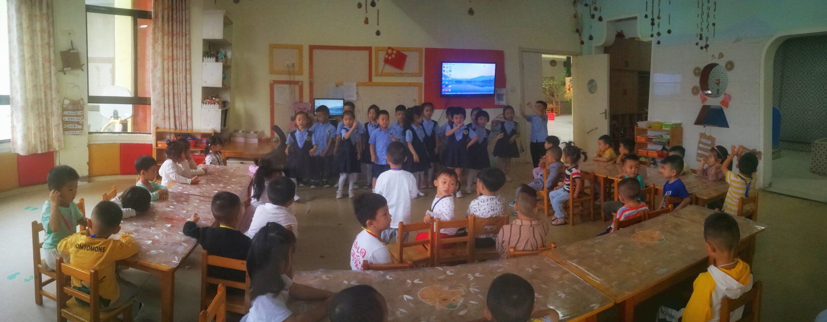 刚刚送走一届大班毕业生,带着些许的不舍与祝福我又迎来了热热闹闹的开学季。中大班的哥哥姐姐回到了熟悉的幼儿园,熟悉的老师依然在班里等候;我们小班的弟弟妹妹怀着未知的好奇与期待,懵懵懂懂等待着与新生活的交汇。刚入园的前几天,孩子们各种焦虑情绪化成一把鼻涕一把眼泪,洒在老师的怀里和教室的角角落落。 今天是入园的第三天,孩子们开始渐渐适应了集体生活,中大班的哥哥姐姐带着精彩的节目和真挚的问候来到了我们小一班,看到可爱的弟弟妹妹们,暖心的哥哥姐姐们立刻上前,笑一笑,抱一抱。他们给弟弟妹妹喂水果,大班的哥哥姐姐表演了好听的律动舞蹈《你笑起来真好看》。我们班的孩子也情不自禁的跟着一起手舞足蹈。现场温馨动人,哥哥姐姐们在这样的活动中,也感受到了自己长大了的自豪感。 丰富多彩的大手牵小手活动,让大班的哥哥姐姐和小班的弟弟妹妹们很快就有了亲近感,弟弟妹妹们觉得既新鲜又快乐。通过此次大带小活动,不仅进一步帮助小班幼儿适应了集体生活,感受到幼儿园就像快乐的家,也为孩子们提供了更多交往的机会和关爱的空间,营造了温暖、和谐充满爱的氛围!