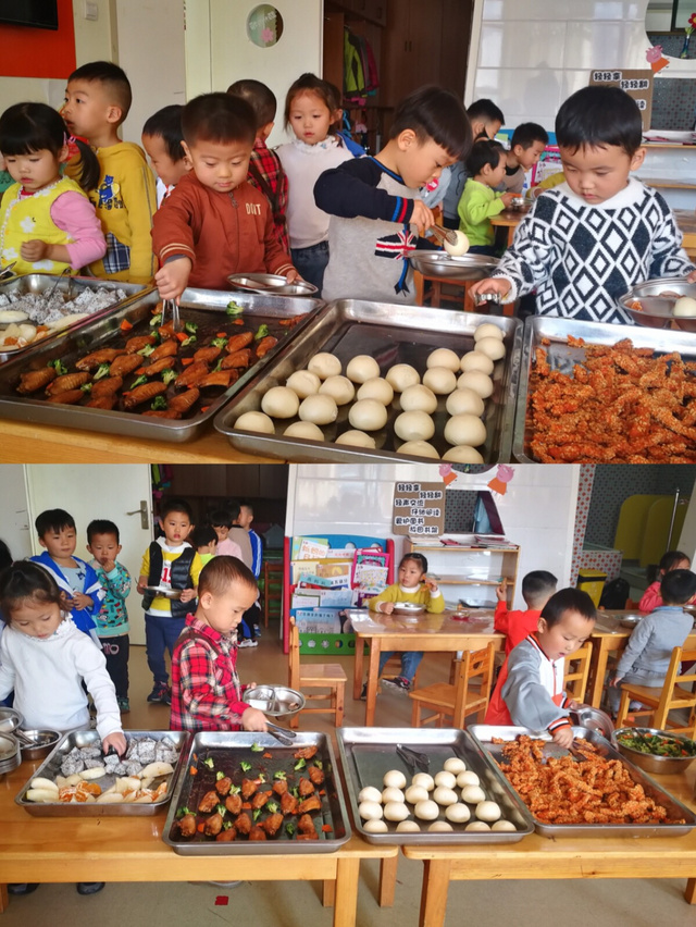 鸡翅、馄饨、西兰花、鸡柳,流心包、火龙果和橘子……今天我们大班首先开启自助餐模式…… 孩子们期待已久的用餐时间到啦,“哇哦,好丰盛的食物啊”,孩子们一边感叹,一边拿着盘子自觉地排着队,用取餐夹挑选着自己喜欢的食物,食物品种的多样,让孩子们大为欢喜,孩子们自由挑选,好吃的不多吃、不喜欢的少许尝试,自主选择中充分体现了本次活动的主题——“我的午餐,我做主”。取餐后,孩子们回到座位上享受着们美食,快乐的心情溢于脸上,整个活动自主有序。 通过“快乐自助餐”活动,孩子们了解了一些自助餐的用餐礼仪,比如有序的排队拿取食物、吃多少拿多少、学会了等待与谦让,养成了文明用餐的行为习惯,提高了自我服务能力,同时也体验到自助午餐的自主和快乐。