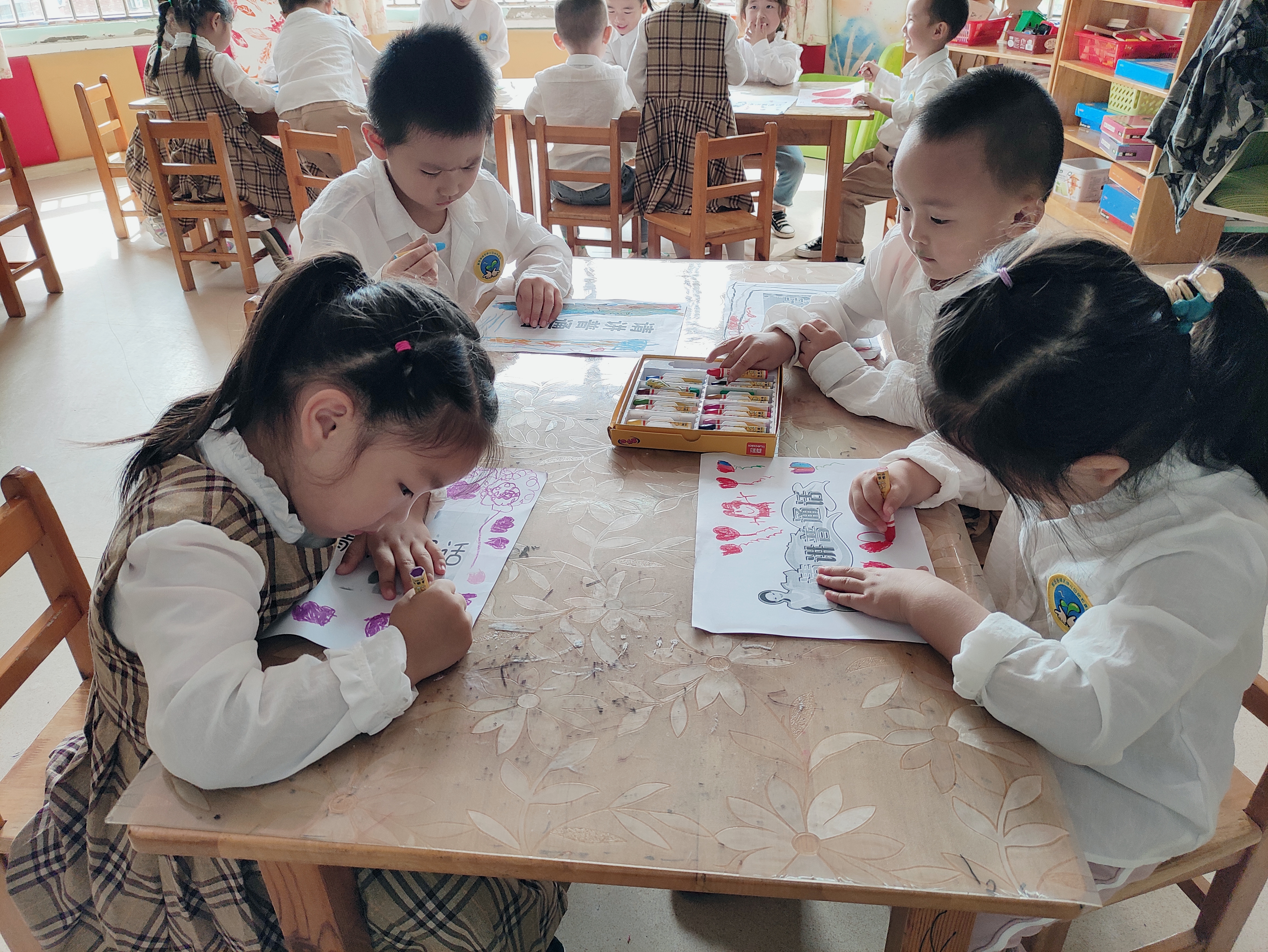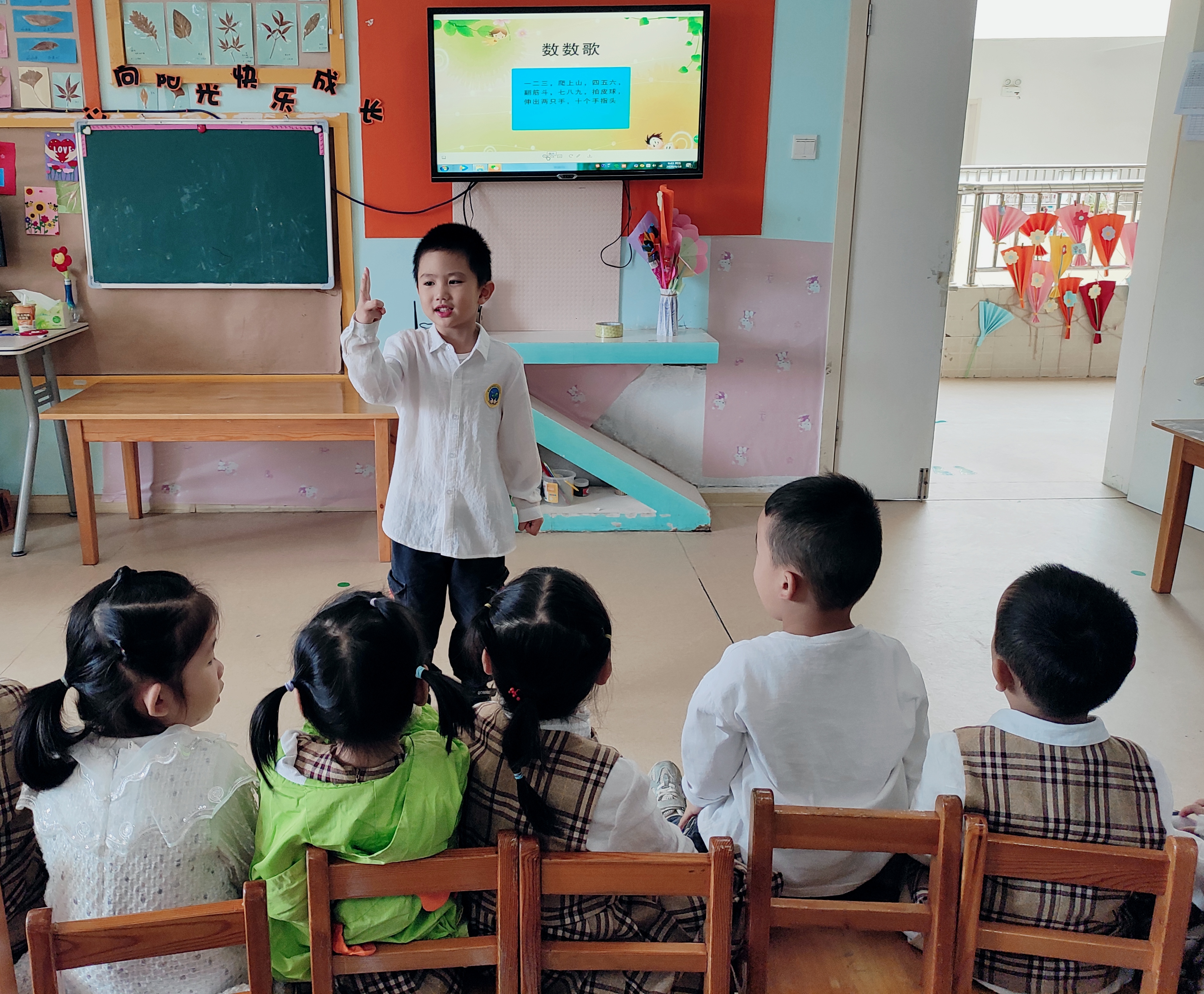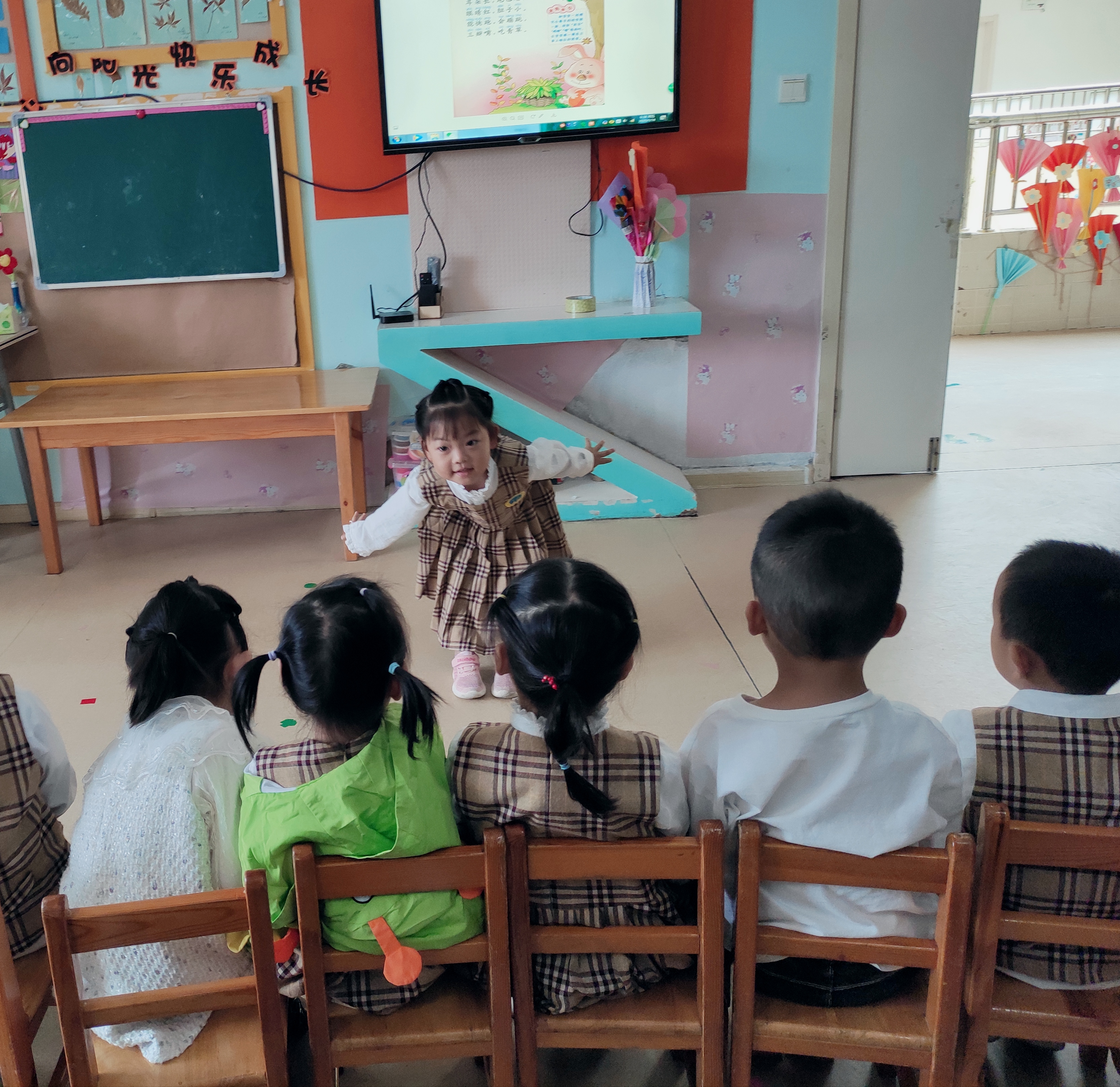(2)我是小小设计师:制作并装饰普通话宣传标语,激发小朋友说普通话和爱说普通话的兴趣,推广普通话宣传标语,营造良好的语言环境。