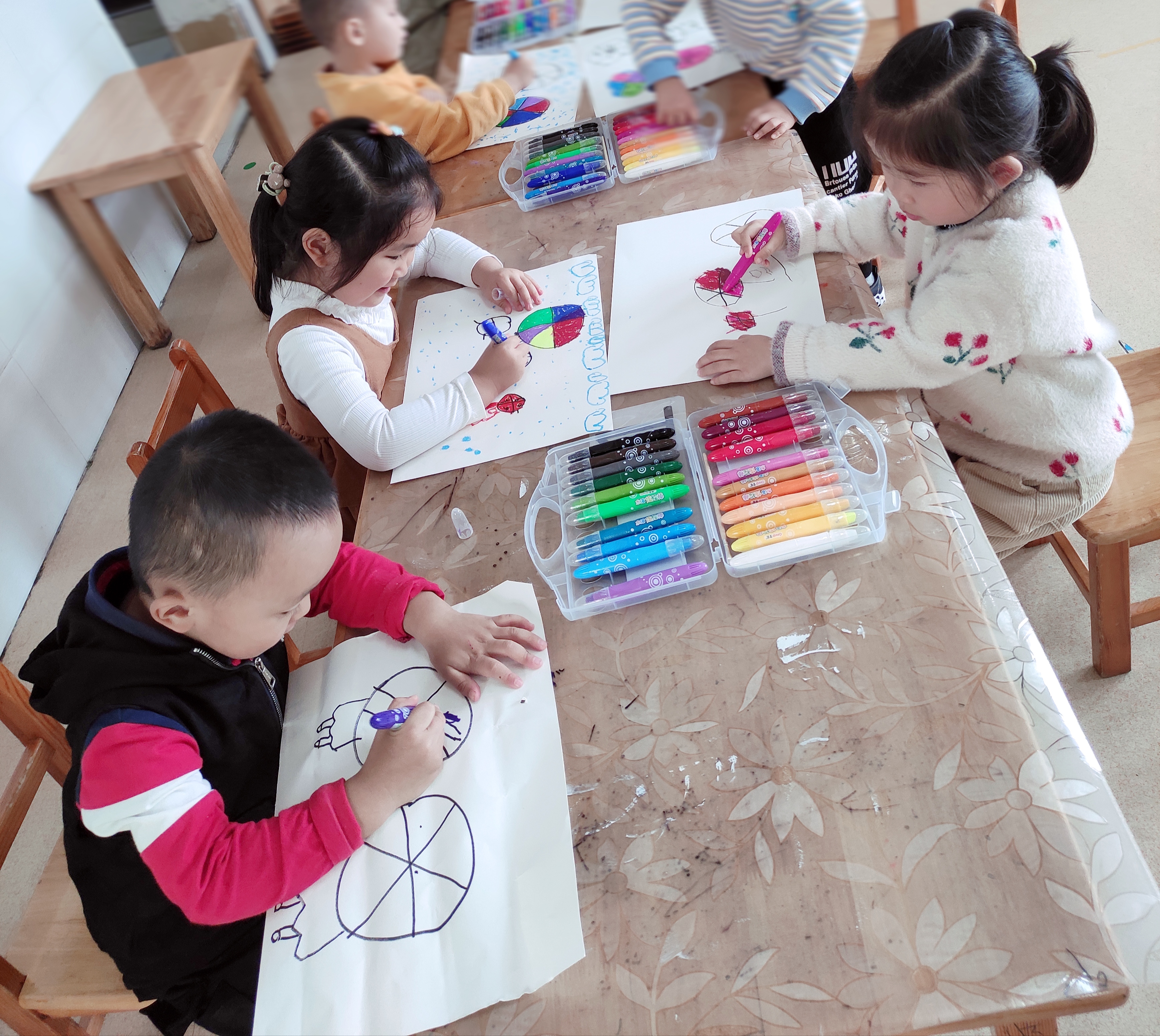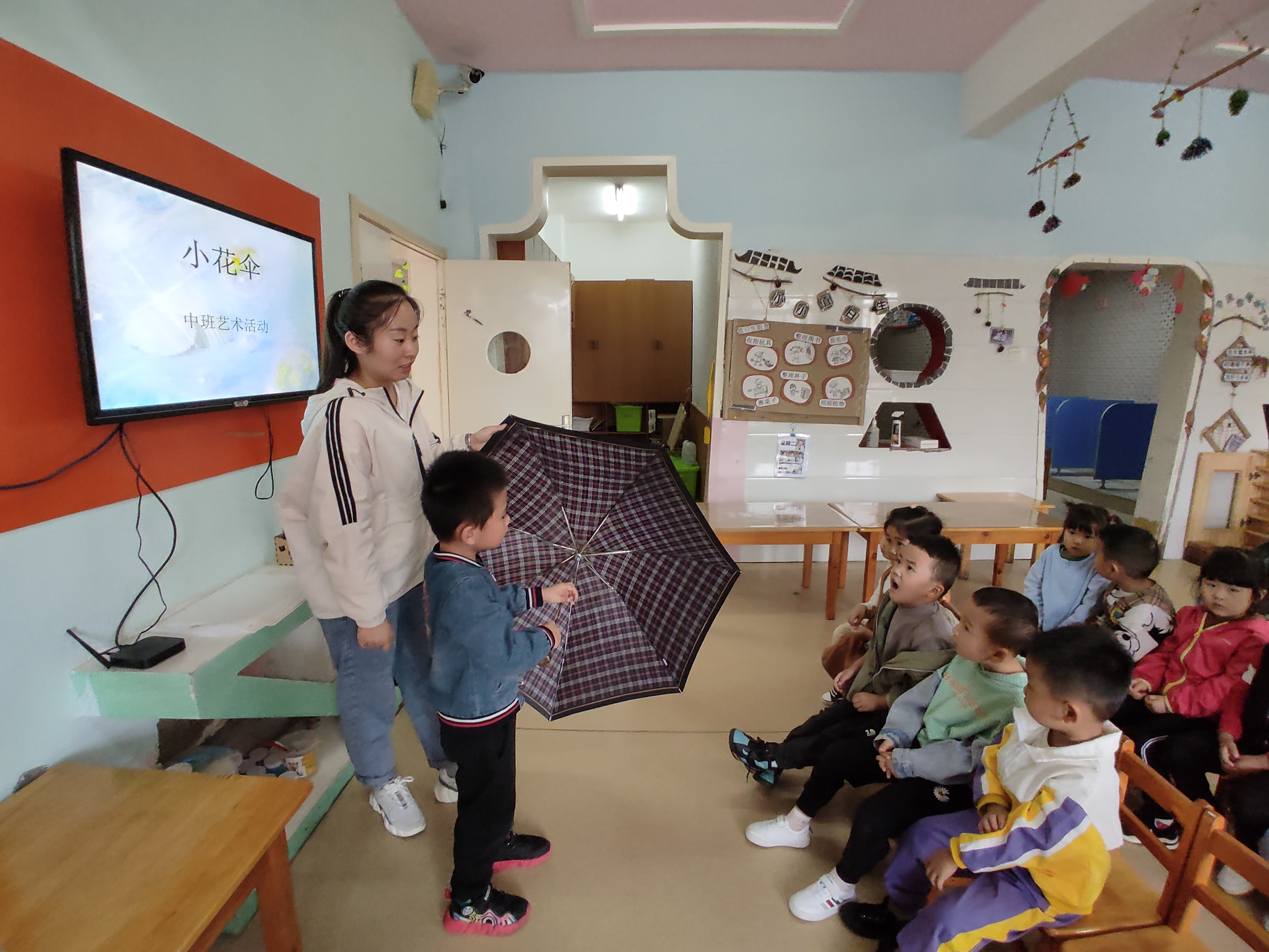 这几天因为天气原因,一直在下雨,所以我开展了幼儿儿生活中常见的“伞”为活动主题,用实物“伞”把幼儿带到活动的氛围中来,一起观察发现小雨伞的构成,说一说小雨伞的颜色和花纹,然后请小朋友们变身为“小小设计师”,设计出自己想要的雨伞,激发起幼儿的探究和想创作激情,通过活动让幼儿真正体验到创作活动的快乐,同时也培养了幼儿的创造能力和动手操作能力。 在活动的过程中,我放手让幼儿大胆想象,有的幼儿还设计了几种图案。活动氛围非常活跃。通过这次活动真正让幼儿体验到了创作活动的快乐,进一步加深了鲜艳色彩和图案的美丽,幼儿笔下的小花伞各不相同,非常有创意。 |