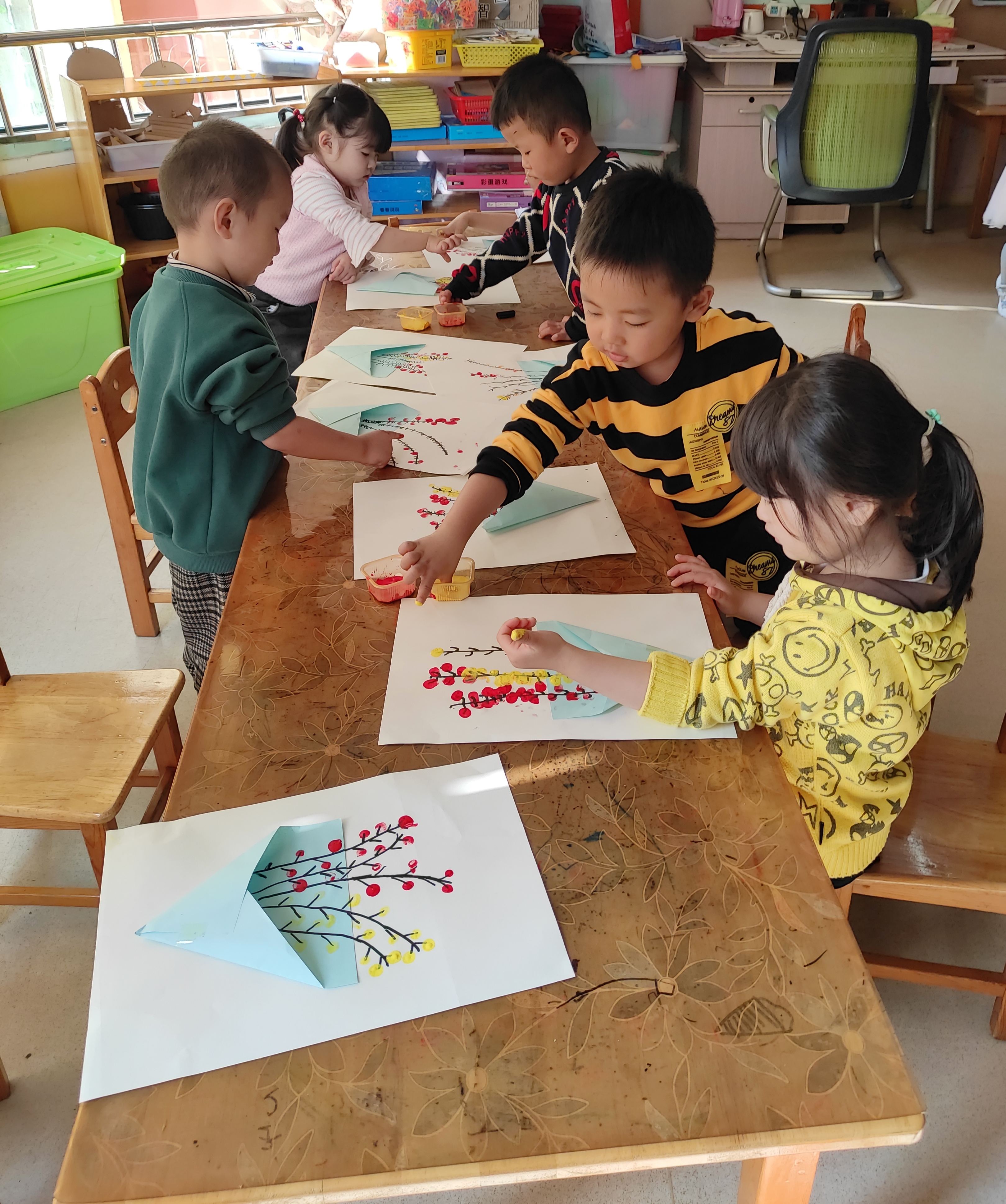 农历的九月九日为重阳节,又称之为茱萸节、菊花节、重九节、登高节。如今,又被定为老人节。古代的重阳节,茱萸这种花草,被赋予了特殊的意义,我们有赏茱萸、采茱萸、佩茱萸和插茱萸的习俗。所以我们在重阳节来临之际,开展了美术活动《美丽的茱萸花》,先带领小朋友认识重阳节,了解重阳节的来历,知道茱萸花在重阳节的重要性,接着讲解茱萸花的制作方法,随后小朋友剪、卷、粘、涂来制作茱萸花,感受到了浓浓的重阳节气氛。 看小朋友们都在认真的制作茱萸花,小心仔细的进行卷花束、粘花束、画枝丫,点花瓣。活动过程中,小朋友们都兴致勃勃,认真参与。