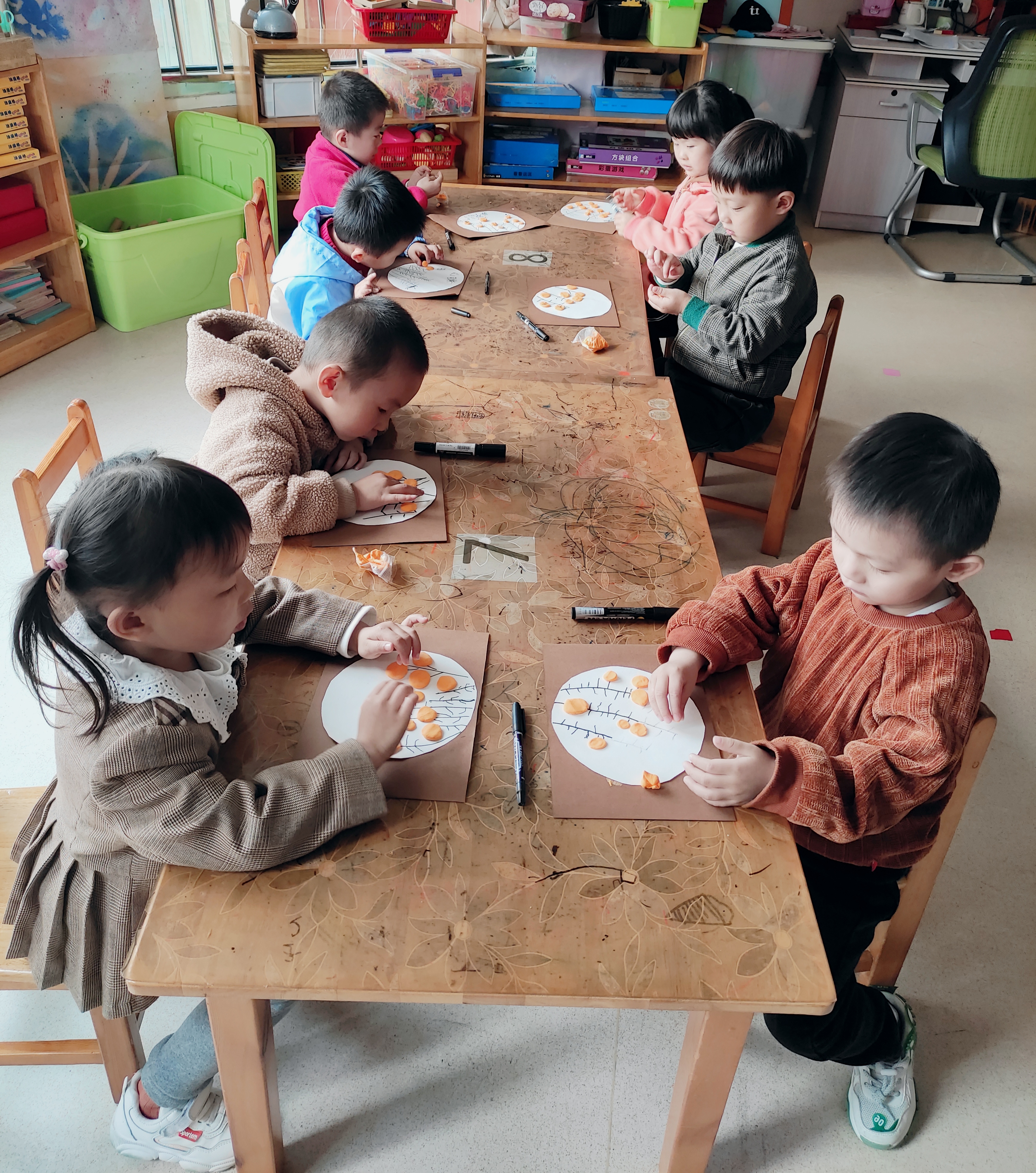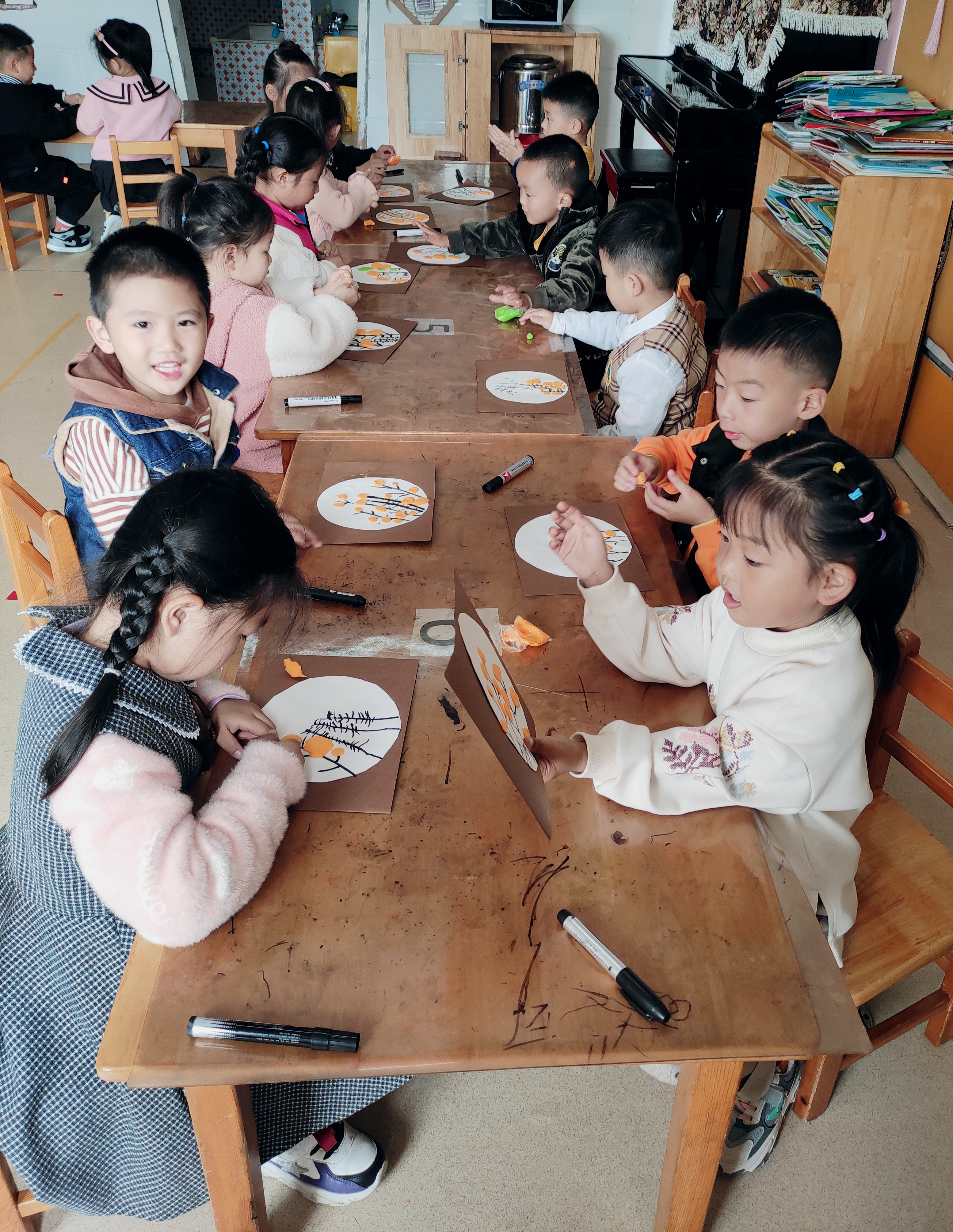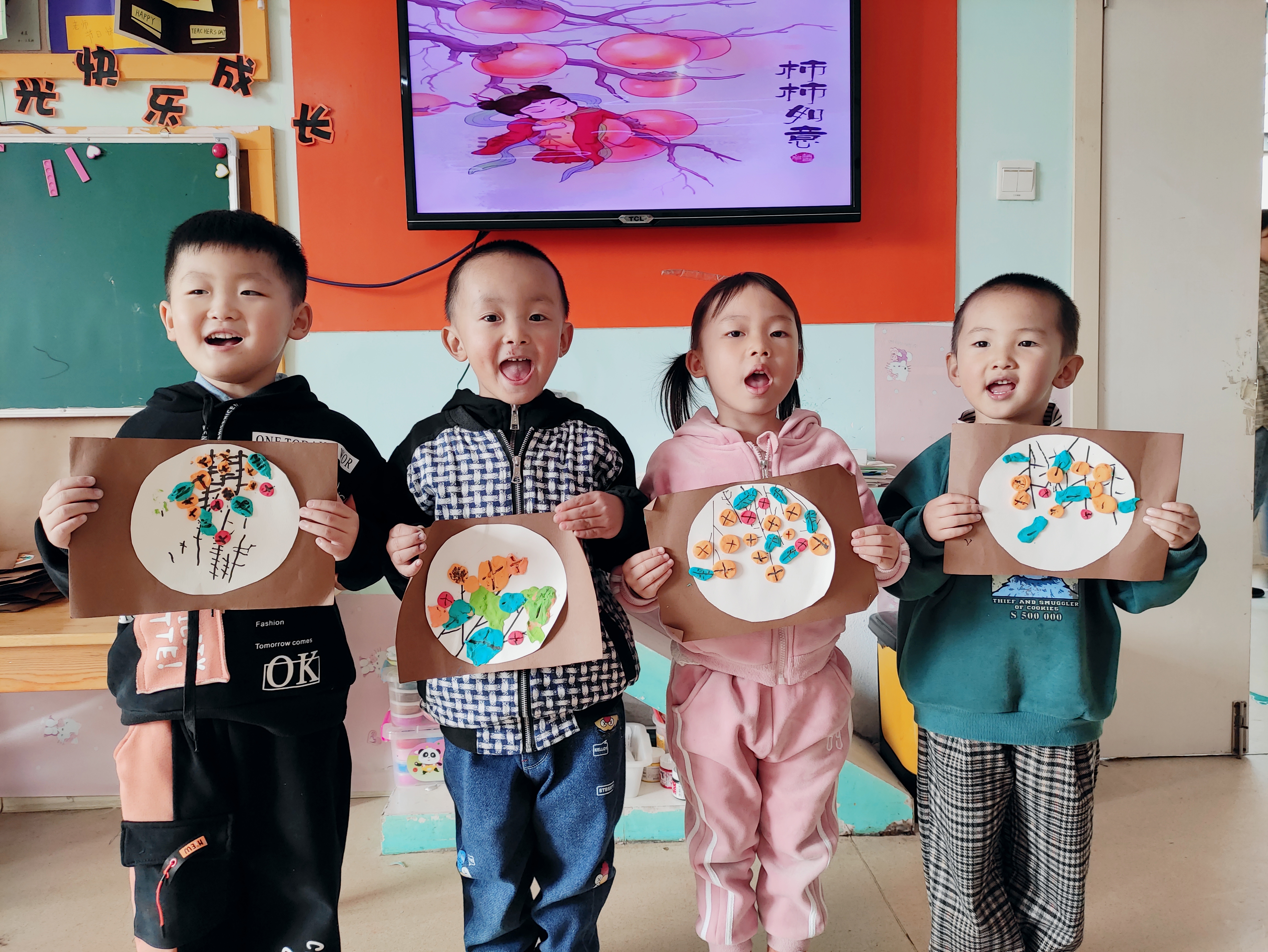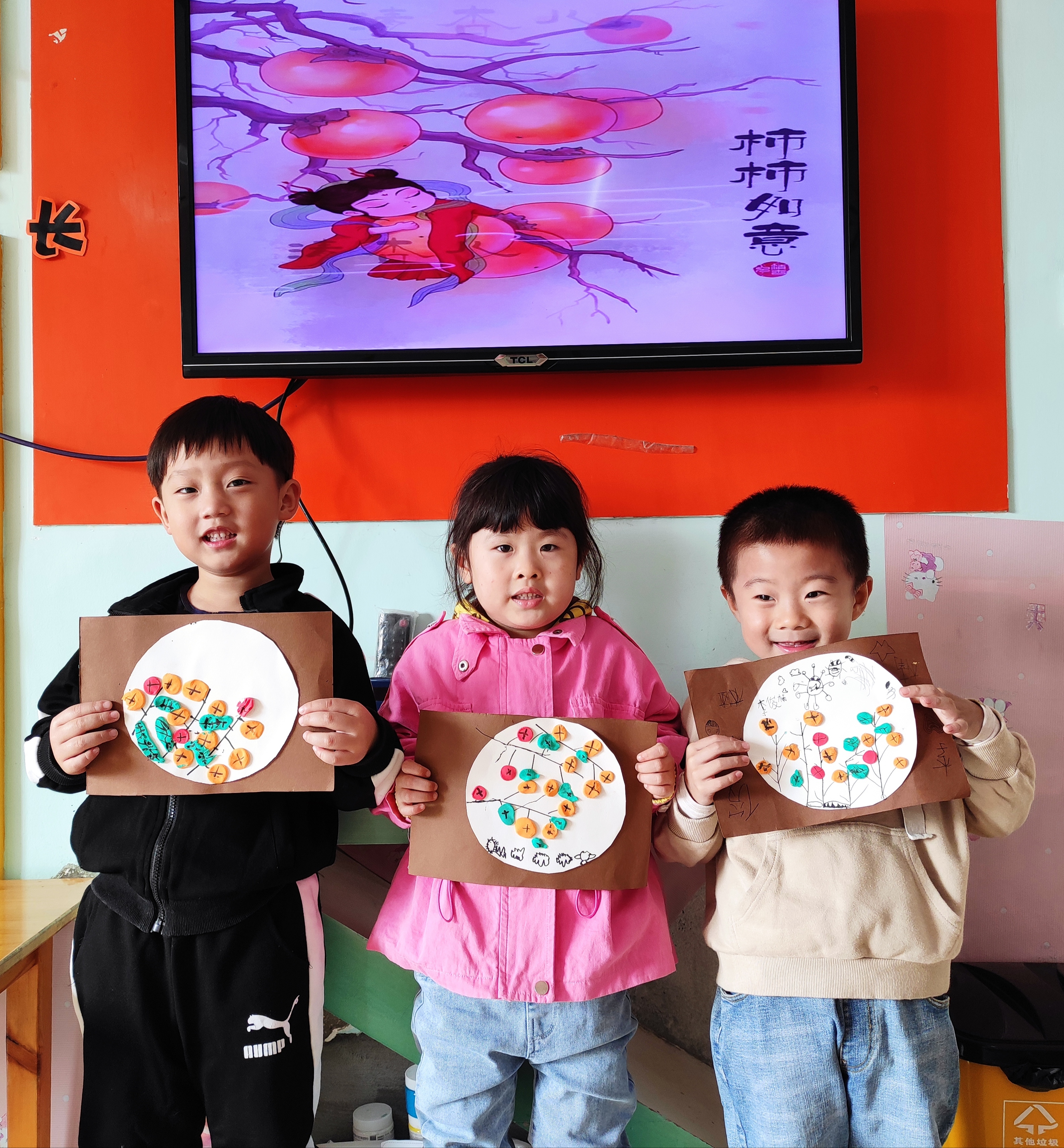 深秋到了,柿子红了。繁华落尽,嶙峋的枝条上却挂满一簇簇、一丛丛,火红的柿子,把荒芜的山野点亮,清冷的秋风也驻足。柿子,也称丹柿,深秋愈红。丹柿饱满润泽,枝条疏密分叉,叶子圆润婆娑,一枝可结实数个至数十个。柿熟时红如火。配以如意之物,寓意事事如意,百事大吉,心想事成,万事如意等。本次作品《柿柿如意》先用记号笔画出柿子树的树枝,再用黏土搓成圆做柿子!最后要记号笔添画上柿子叶柄的和叶子的纹路,宝贝们都在认真的做着可口的柿子。 快看看我们的柿子好看吗!深秋到了,柿子红了,多吃点柿子,感受秋天的味道。“柿柿”如意,心想“柿”成。 |