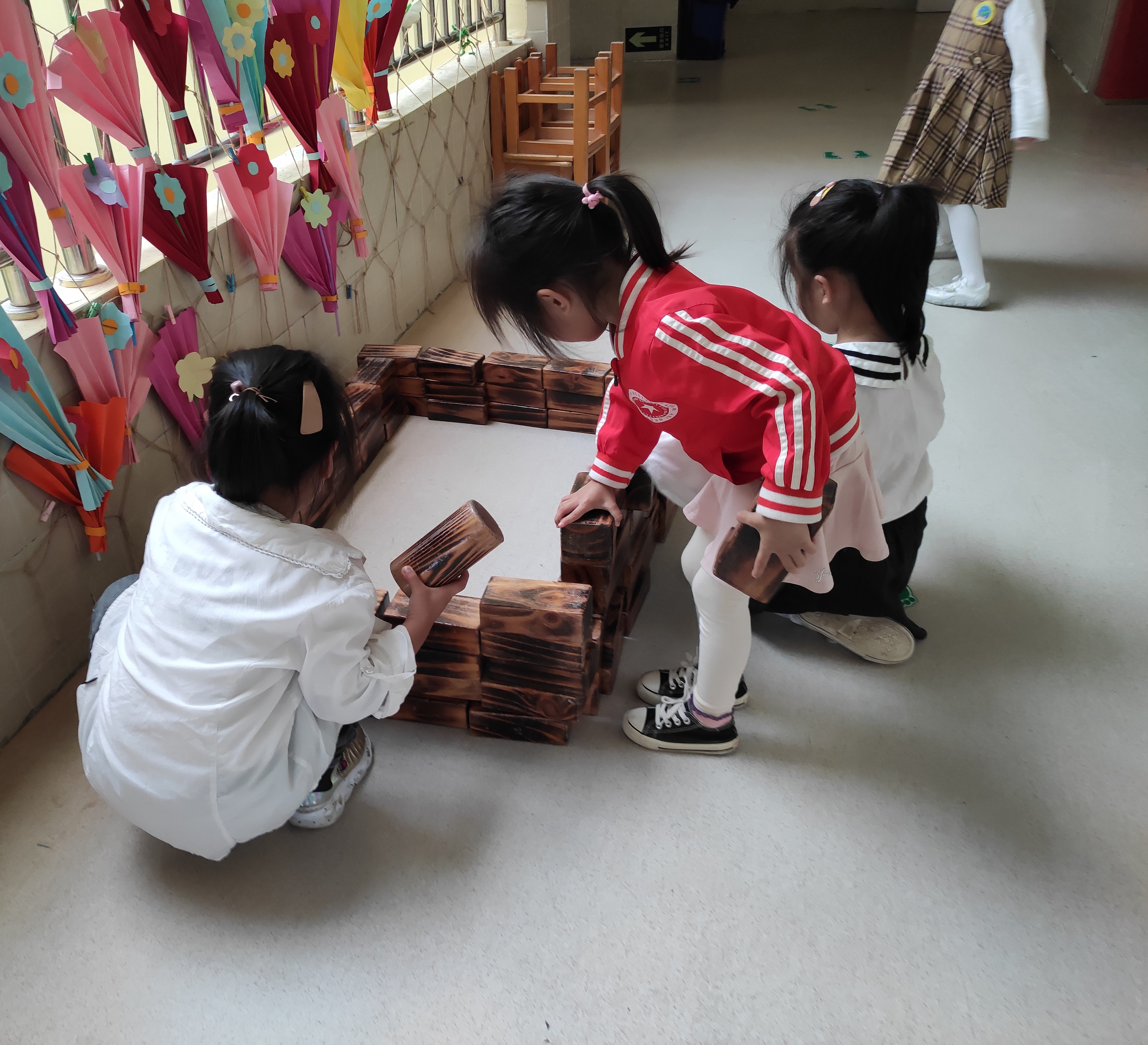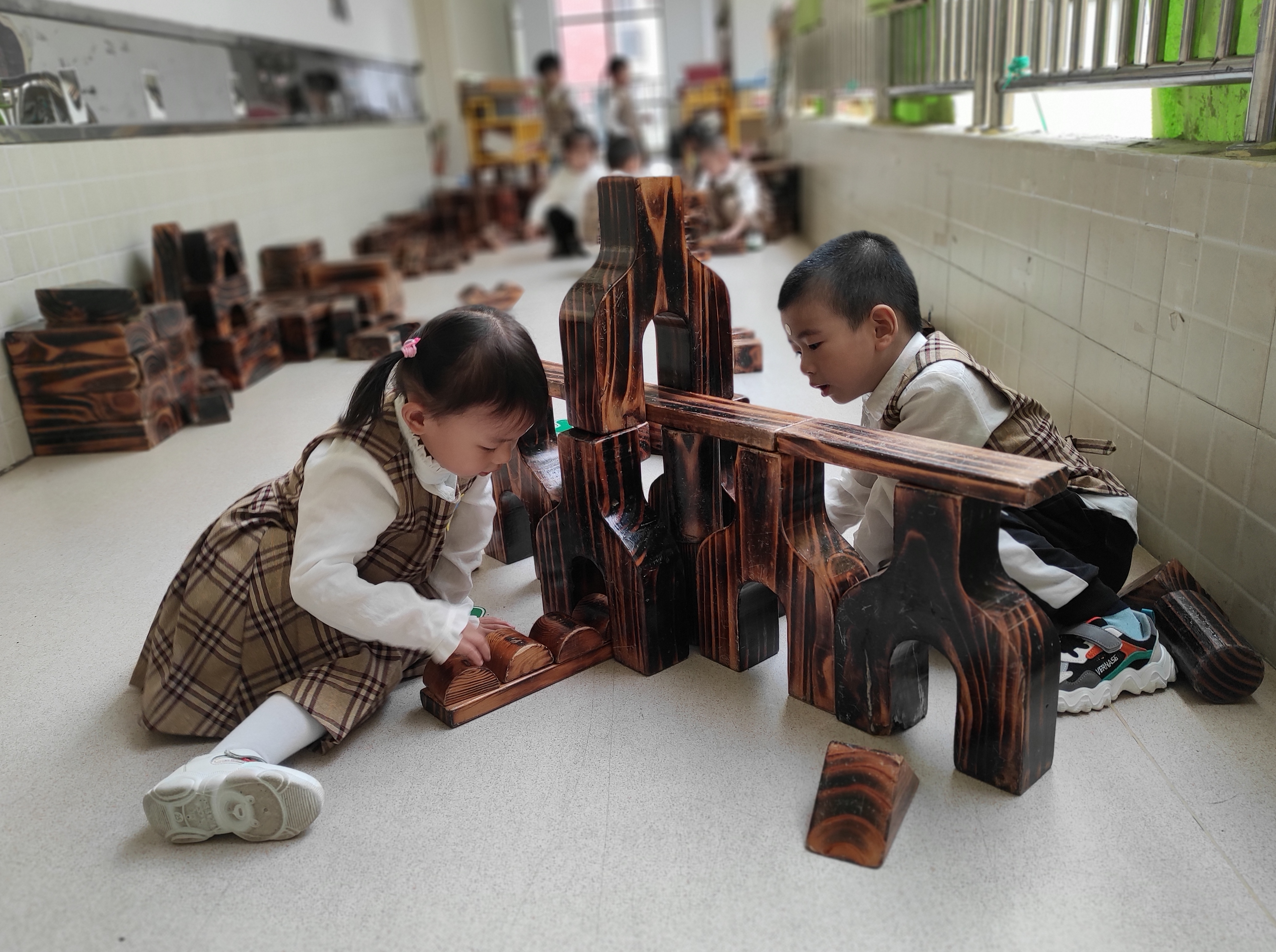 建构区是孩子们最喜欢的区域,为了孩子更好的发展,我们在建构区投放了大量的大型木制积木,孩子们很是喜欢,但仔细观察,发现部分孩子合作意识不强,他们总是各自玩自己的,致使搭建的效果不够理想。从小培养孩子的合作意识非常重要。 观察情况:孩子们对这些大型积木很是感兴趣,他们自由组合后,便各组搭建起来,可发现各组幼儿缺乏主题性,普遍存在搭建物品十分凌乱,个别小组幼儿还有各自收藏积木的现象,感觉他们的操作没有计划、没有目的,盲目搭建。 观察分析:中班幼儿已具备合作意识,大部分幼儿愿意与同伴合作游戏,或在面对问题时与同伴合作解决,但他们的自我意识却比较明显,只关注自己看到的或感兴趣的事物,意识不到如果别人在做一件事时,自己还可以做哪些事。他们欠缺解决问题的方法和技巧,尤其是当合作遇到问题时不知怎样解决。如何能够让幼儿的合作高质量、见成效?这就需要教师教会幼儿合作的方法,对幼儿的合作进行科学的引导。 实施措施及效果:首先,要尊重孩子的意愿让他们各自商量组建小组,让幼儿在自主的环境下,在自发的体验中学会合作;这样小组内部成员才能建立良好的沟通氛围,这也是合作产生的基础,良好的沟通氛围需要小组内部成员的共同努力,当然教师也要对分组进行正确的引导与调整,正确的引导与调整是指教师要保证小组内的成员能够取长补短,通过调整使每组幼儿的水平相当,保证小组间竞争的公平性。 其次,幼儿在合作中愉快的情绪体验也是合作学习产生的重要原因之一。由此,教师应在活动中强化幼儿对合作成果的感知,可以在活动评价的过程中对能够体现合作成果的方面进行重点点评,潜移默化地引导幼儿体验与同伴合作的好处,激发幼儿在合作学习中快乐的情绪体验。当幼儿看到了合作的成果,体验到了合作的快乐,自然会增强与同伴合作的意识,从而为进一步提升合作能力打下基础,另外,小组合作是合作的一种有效途径,幼儿以小组为单位进行合作,不仅能加深幼儿对合作的理解,提升幼儿的合作能力,还能培养幼儿的竞争意识。 我们教师作为观察者、引导者,还应对幼儿间的合作给予及时的关注,以提升幼儿合作的质量。经过一段时间的观察,发现幼儿合作能力有了明显进步,各组基本都能进行有目的、有计划的合作性建构,并能在辅助材料的帮助下,进行自由、自主的游戏,玩的不亦乐乎!以下是我们班级孩子在建构区的搭建图片,孩子都可以合作并且有主题的进行搭建。 |