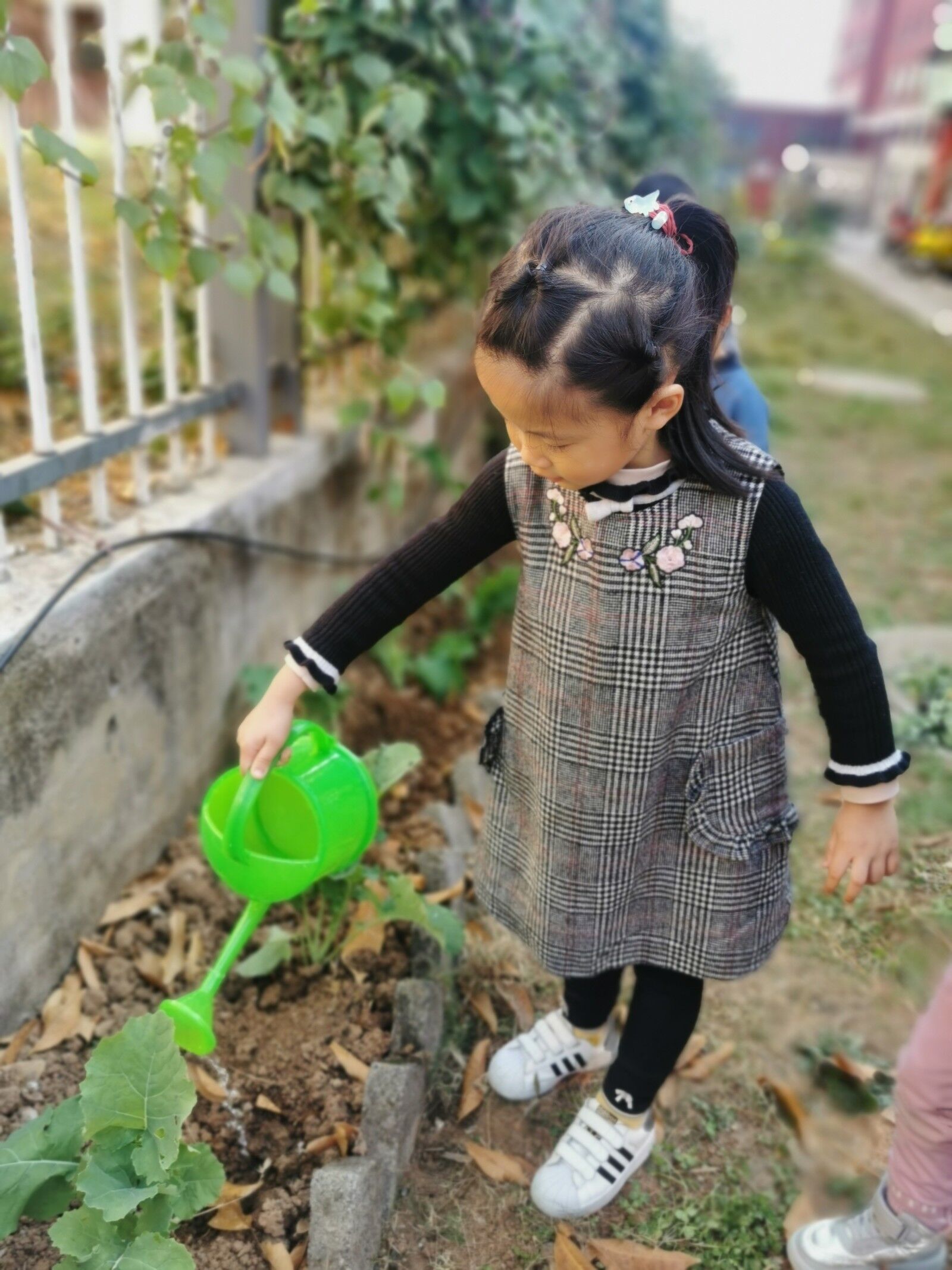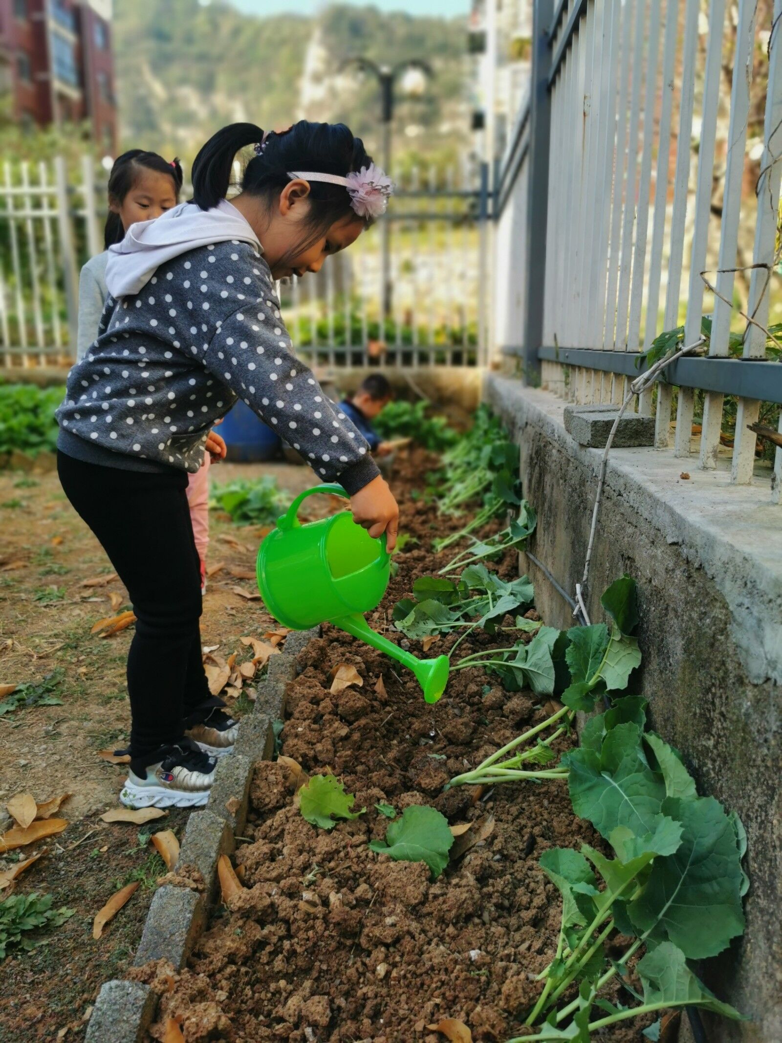 看,小朋友们给油菜浇水,希望它快快长大!活动中,孩子们亲子收集种子、翻地、播种、拔草、浇水,通过自己的劳动感知植物的生长过程。小小的种植地是幼儿园里的一道亮丽风景,是孩子们亲近自然的一本“活教材”,孩子们在这样一个持续的过程中获得了快乐、体验了成功。