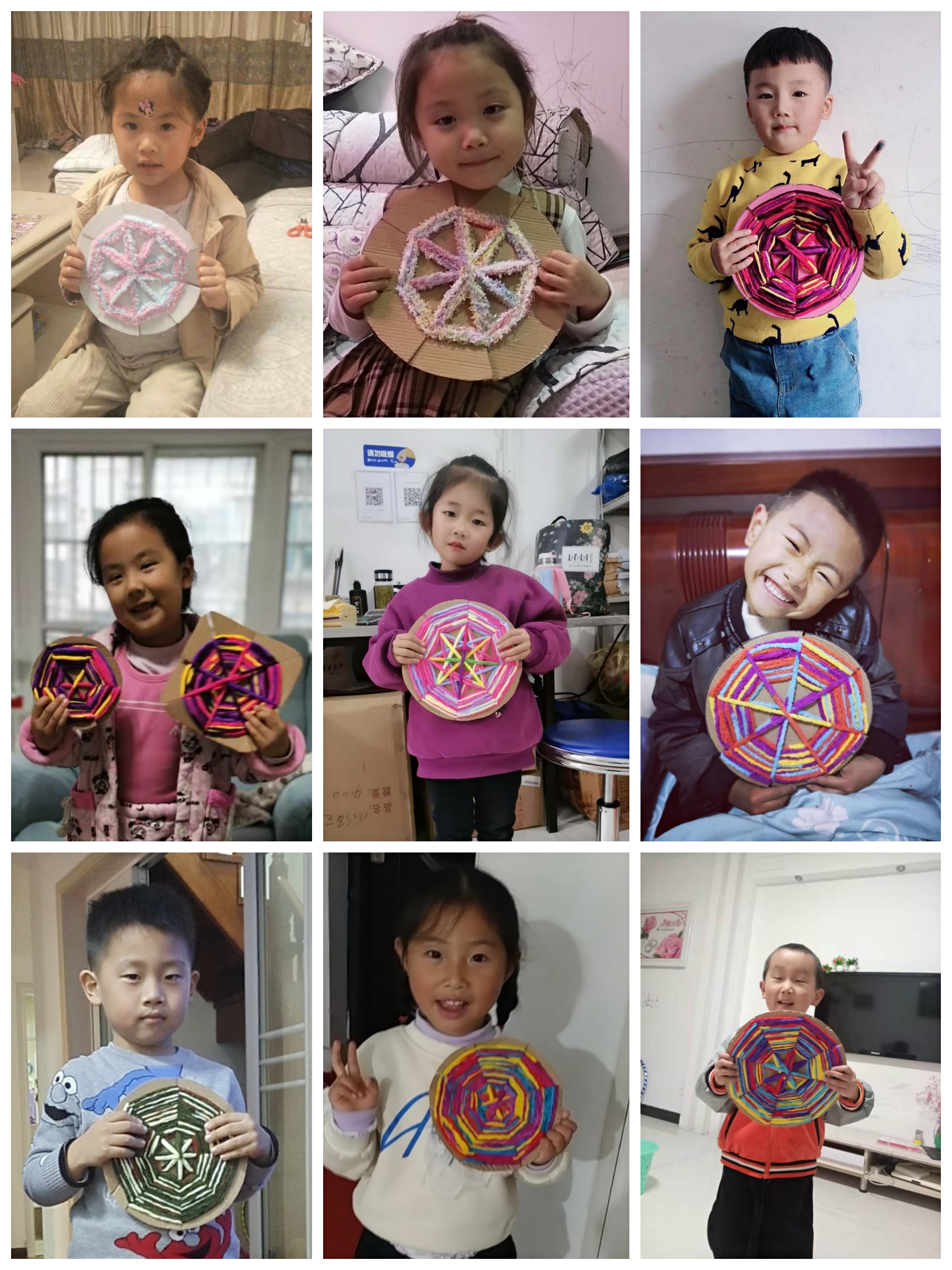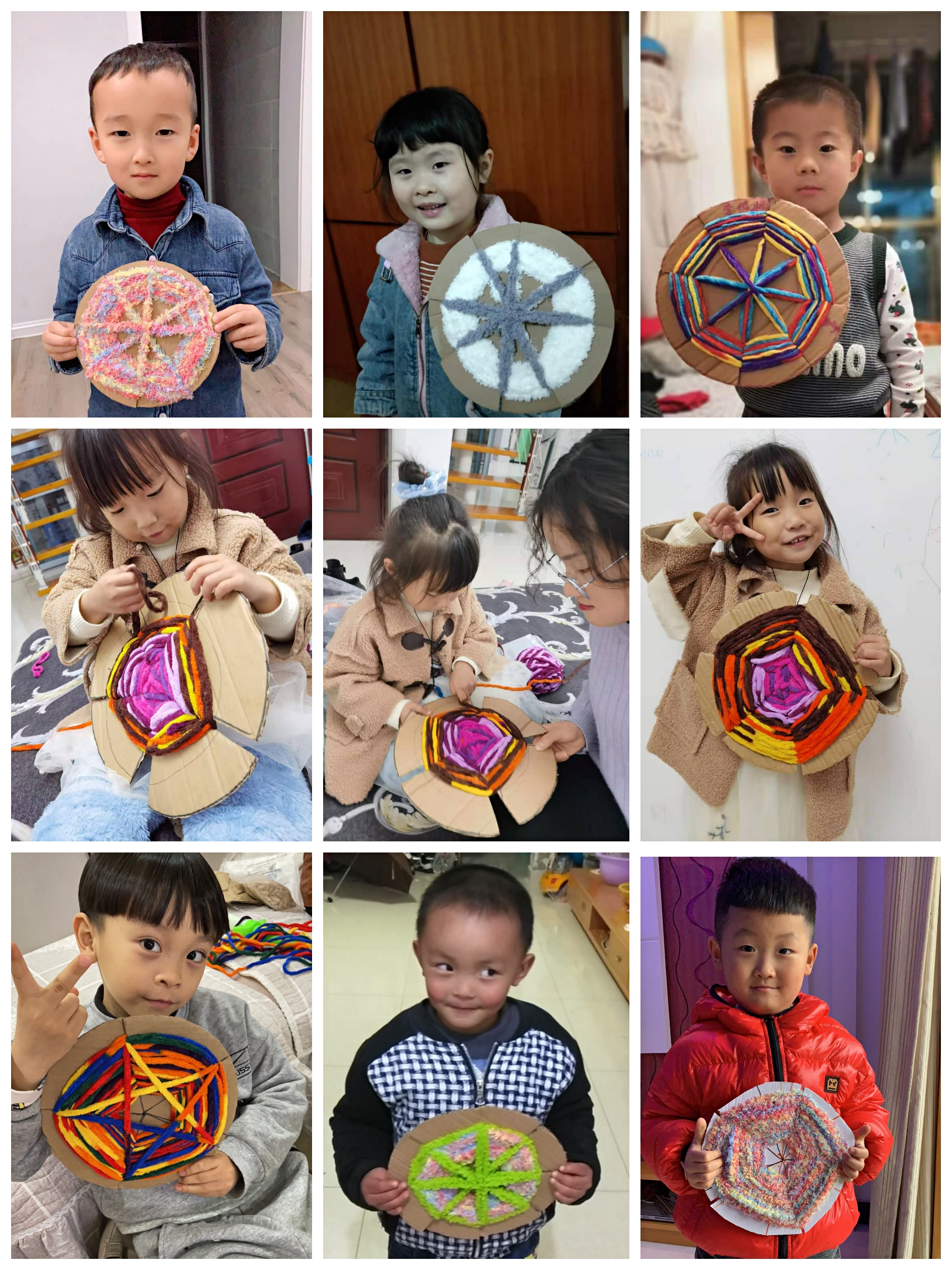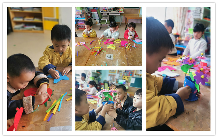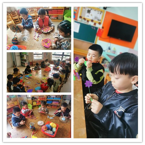 幼儿园编织课程与幼儿年龄特点和身心发展规律相结合,将课程中融入编织艺术的精髓,多形式、多渠道地将编织活动融入到环境创设、主题活动、区角活动中去,吸引幼儿兴趣,让幼儿通过亲身体验、亲自操作等方式进行学习。中班幼儿经过小班阶段的锻炼,认知能力和动作技能都有了一定的提高,我们请幼儿继续欣复一些编织物品,培养幼儿对民间编织的兴趣的同时积要色彩、图案、组合等方面的知识和经验,此时所提供的材料也相应有所变化,如各种彩色纸条、城线、稻草等。在这一阶段开始,由简单到复杂,进行空心盘贴和实心盘贴,并运用绘画和盘贴相结合,设计了“可愛的小动物”、“夏天的水果”、“好吃的蔬菜”、“美丽的小花”等物品。虽然中班在小班的基础上编织技能和耐心细致方面有所提高,但也无法进行有难度的操作活动,老师寻找出适台中班幼儿操作的编幻类型,经过创编、修改,把它融入到中班幼儿的操作活动中。 同时我们也把活动延伸到家庭亲子操作,减少了幼儿在家看电子产品的时间,培养了幼儿的专注力,家长也大力支持。我们把幼儿的编织作品投入 到幼儿园的环境创设中去,也体现了我们农村幼儿园的乡土特色。 |