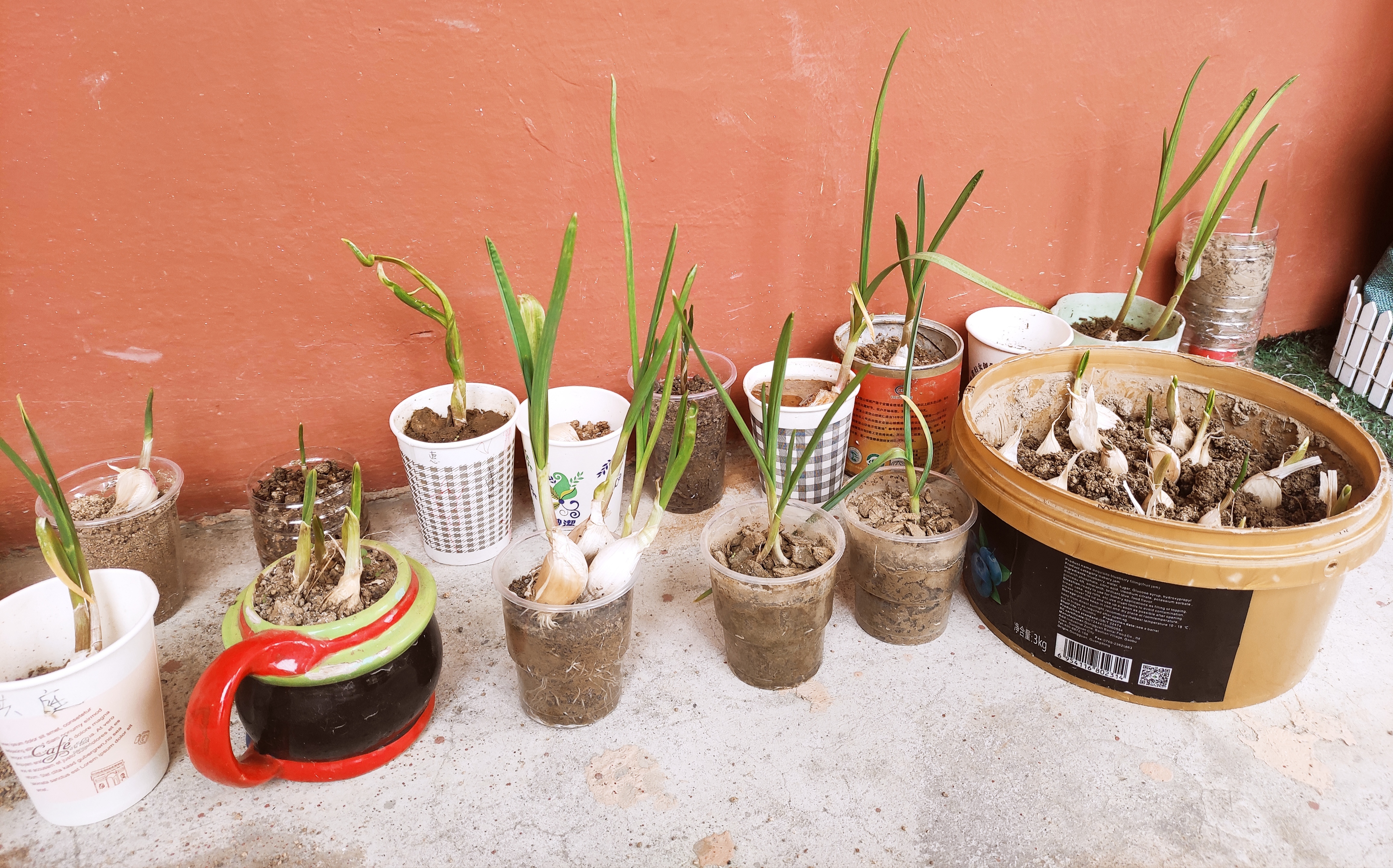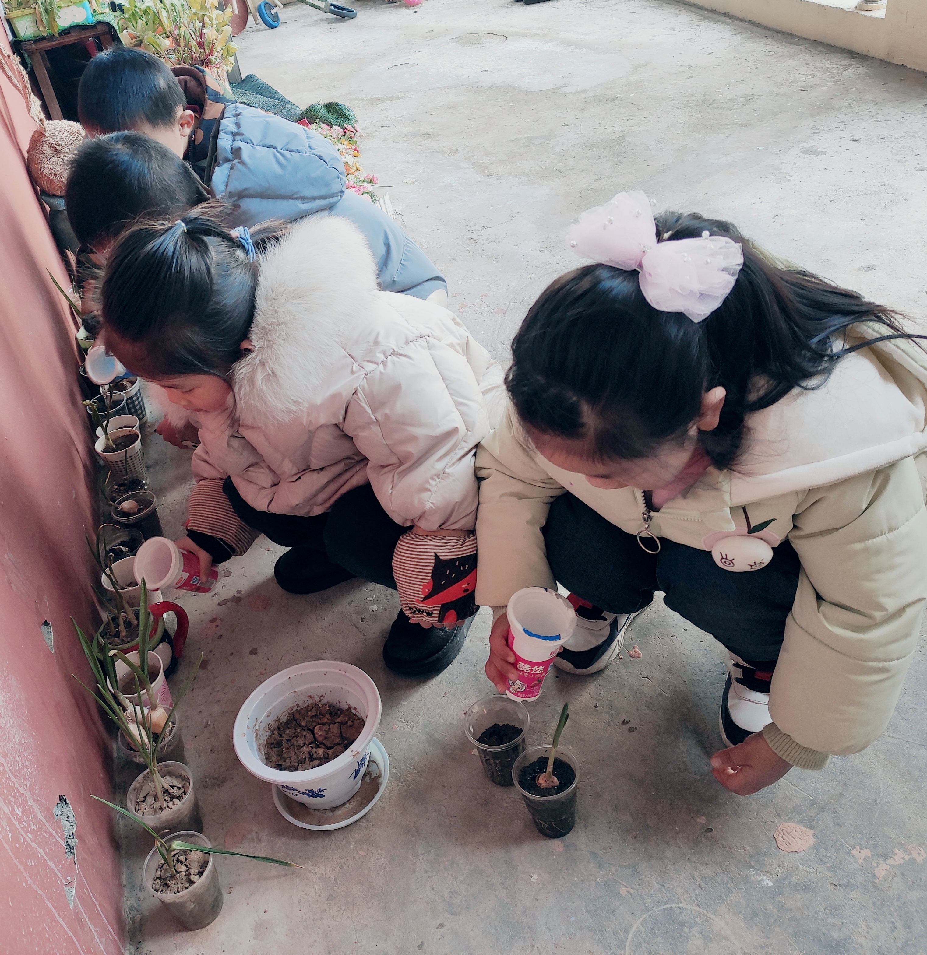 一块小小的种植园,是孕育动植物生命生长的小天地,也成为孩子观察、了解、探究植物的学习窗口。为丰富幼儿生活,亲近自然,体验种植的乐趣,孩子们在老师的带领下,开展了“种植大蒜”活动,孩子们种值大蒜并约定好每天定时给大蒜浇水,观察大蒜生长的过程. 来到幼儿园的每一天,孩子们就迫不及待的去看大蒜,哇,可爱的大蒜已经长出了嫩绿的小芽,远远看去,像一朵朵白色的小花,隐隐约约还透着几点绿,真美呀! 还在讨论哦!偷偷的告诉你,如果你在种植时,埋土埋得很浅,你就可以看到大蒜下面像白白胡须一样的根,老师告诉我们,大蒜就是靠这些根吸收营养的。 我们想了解一些大蒜的知识,就和老师一起查了很多资料,了解了一些有关大蒜的小知识:大蒜的蒜瓣是具有再生繁殖能力的根茎,在适当的温度与湿度的条件下就会生根,发芽,长出叶子。大蒜具有很强的杀菌作用,它是天然植物中抗菌作用最强的一种,它可以杀死肠胃的细菌病毒,帮助人们排除体内的毒素,吃大蒜还可以预防感冒,减轻发烧,咳嗽等感冒的症状!我们对大蒜的探索还没有结束,孩子们还在期待着蒜的变化;期待着长出绿油油的蒜叶;期待着有一天能品尝自己种的大蒜……正是这种期待让我们的活动产生新的价值并得以延续,大蒜宝宝,快快长大吧!