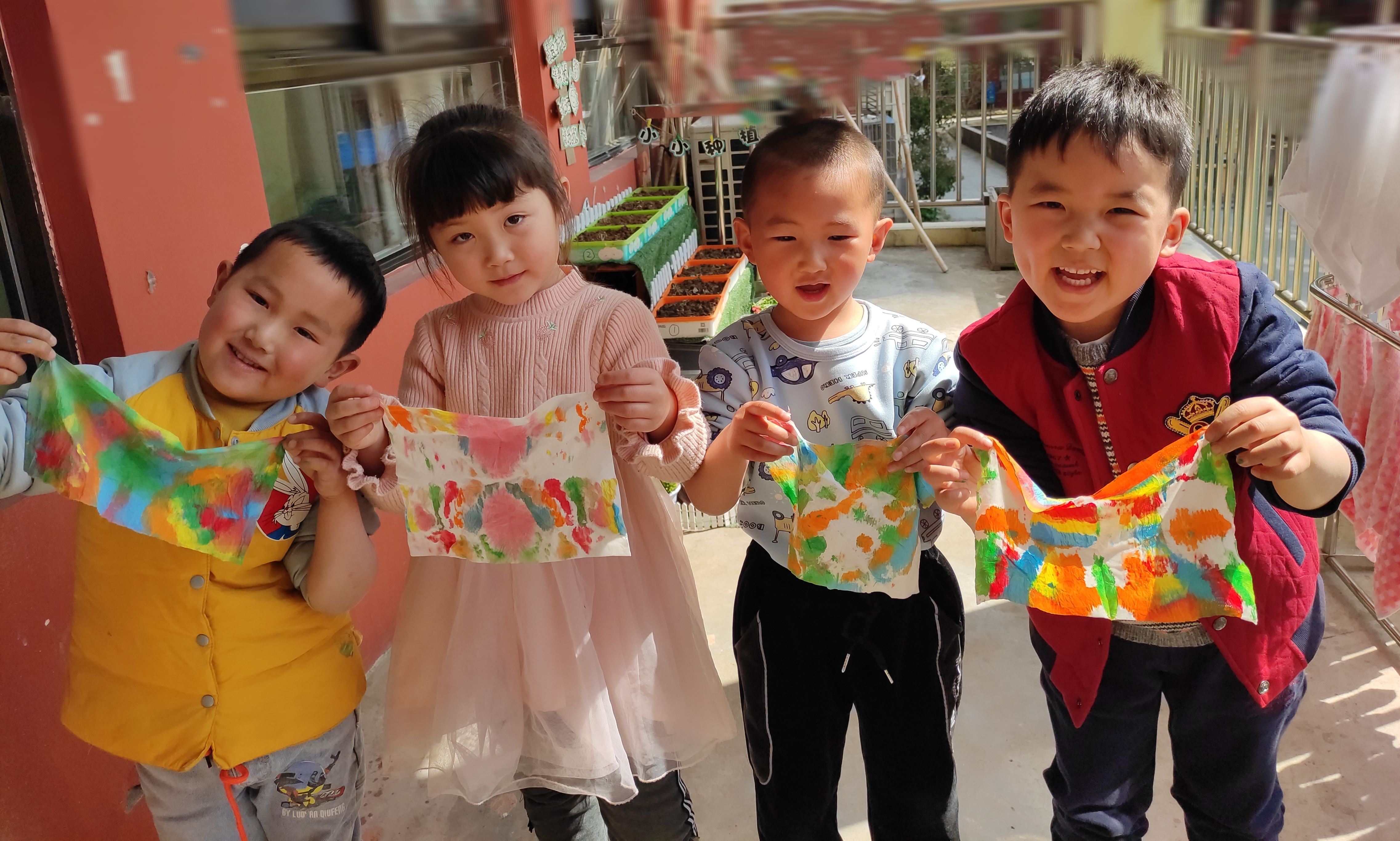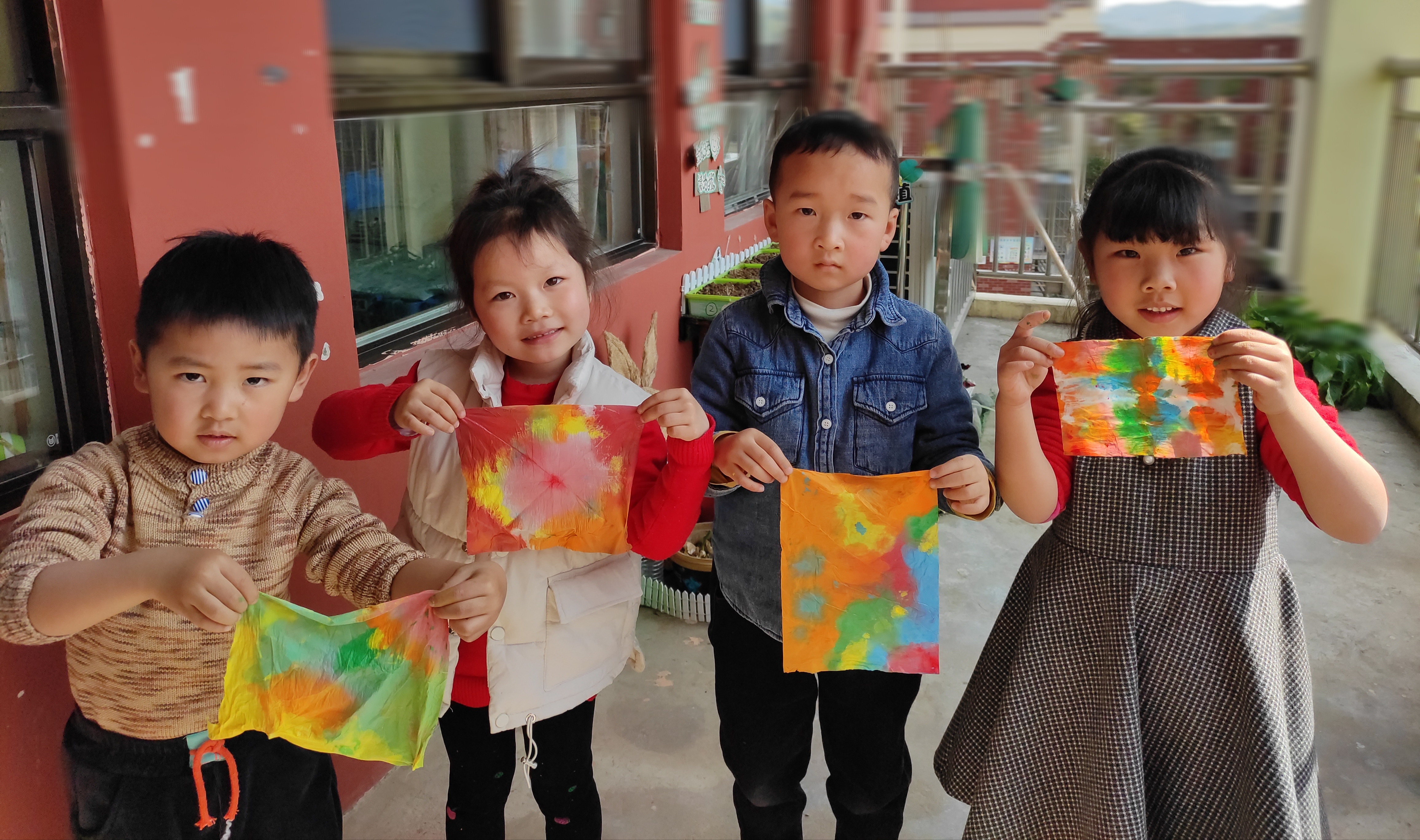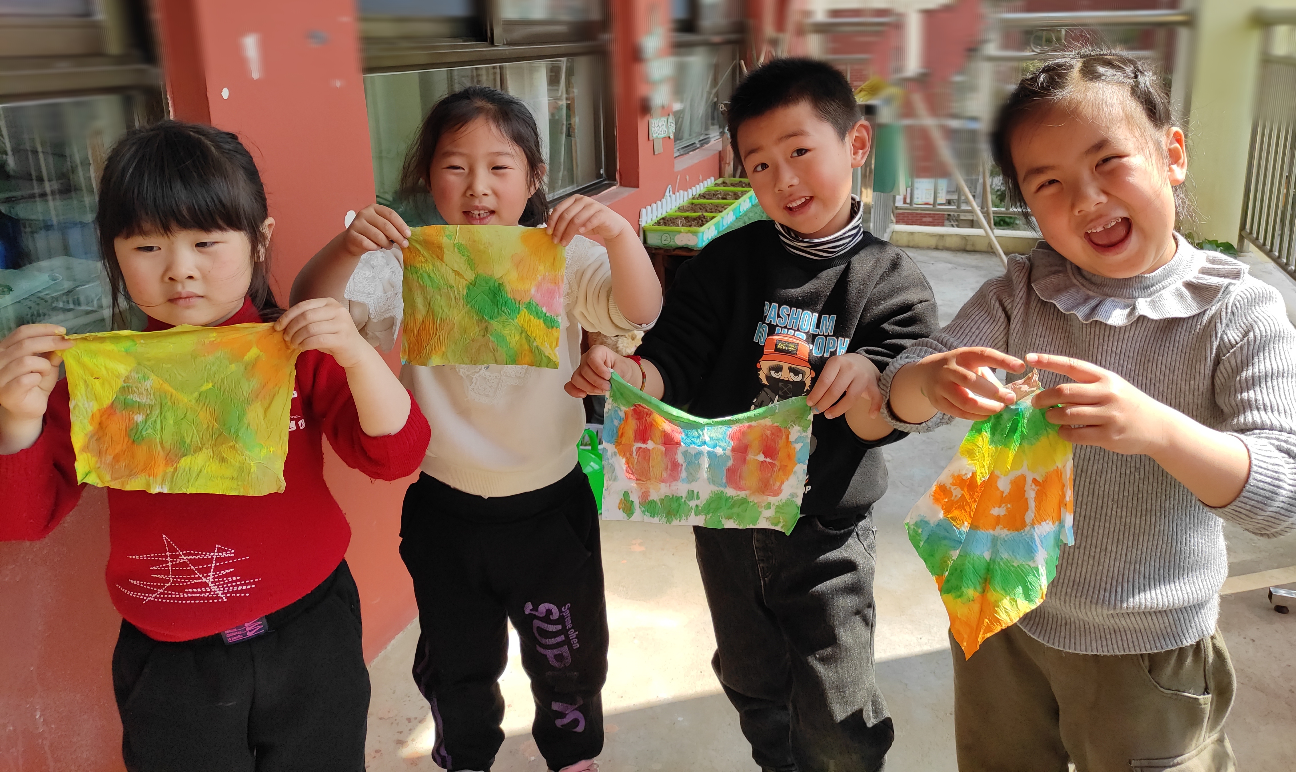 “丢手绢,丢手绢,轻轻地放在小朋友的后面,大家不要告诉他,快点儿快点儿抓住他,快点儿快点儿抓住他……”小朋友们还记得伙伴们玩丢手绢游戏时的儿歌吗?手绢也叫手帕,小朋友们的手帕都是什么样子的呢?今天我们小朋友利用染纸的方法来制作漂亮的手帕啦. “染纸”是中国传统的一种民间美术,由于其艳丽、随意,操作简单而受到人们的喜爱。染纸是将吸水纸经过剪、折、叠、卷、揉皱等方法进行加工,并通过点、浸等方法上色而形成纹样的一种美术创作方法,极富童趣和创造性,因其变化无穷,极能激发幼儿的好奇心和探究欲,吸引幼儿不断的动手动脑,大胆尝试,体会其中颜色和图案的变化万千。每一次尝试都会有不同的惊喜,它操作方便,色彩鲜艳,纹样千变万化,可以产生许多意想不到的效果!一起来跟我们看看吧! 首先进行颜料的调色,然后就开始操作啦!瞧!我们采用了浸染和点染的方法!