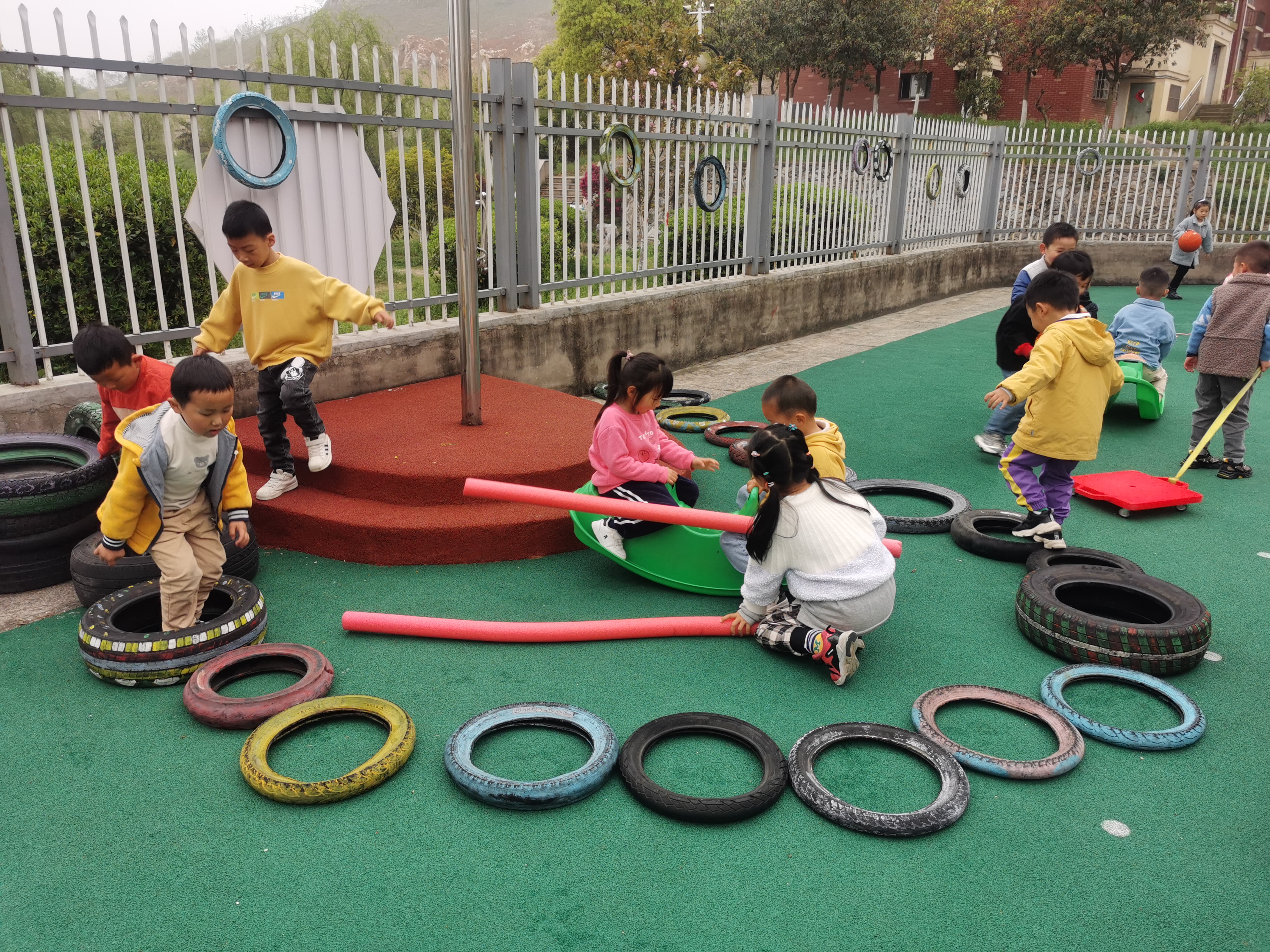 每次晨间户外活动的时候,三五个孩子总是围着升旗台打转,起先我还会引导他们去别的地方去玩,怕他们在台阶上摔倒。后来我慢慢的发现,这个小小的升旗台让他们充满了想象力。有时是表演的舞台;有时是跳跃的起点;有时是依靠的沙发,有时是睡觉的床......慢慢的升旗台成了孩子们的秘密基地。 童年是孩子想象力最丰富的阶段,因为他们知道的少,好奇心很强,所以他们会发挥想象,把一些在现实中不能获取的内容,在一些相似的空间模拟出来,比如他们会把升旗台想象成生活中任意感兴趣的场景,在没有成人的干扰下愉快的游戏。 秘密基地其实还有一个神奇的作用,就是能给孩子安全感,在一个专属于自己的小空间游戏玩耍,这是多么美妙的感觉。在这个小小的空间里,孩子更能感受到自己对环境的影响和主宰,更有驾驭感,更能掌控,当一切都是触手可及的时候,安全感也就随之而来。在孩子的心里,秘密基地是他们心里成长的乐园。