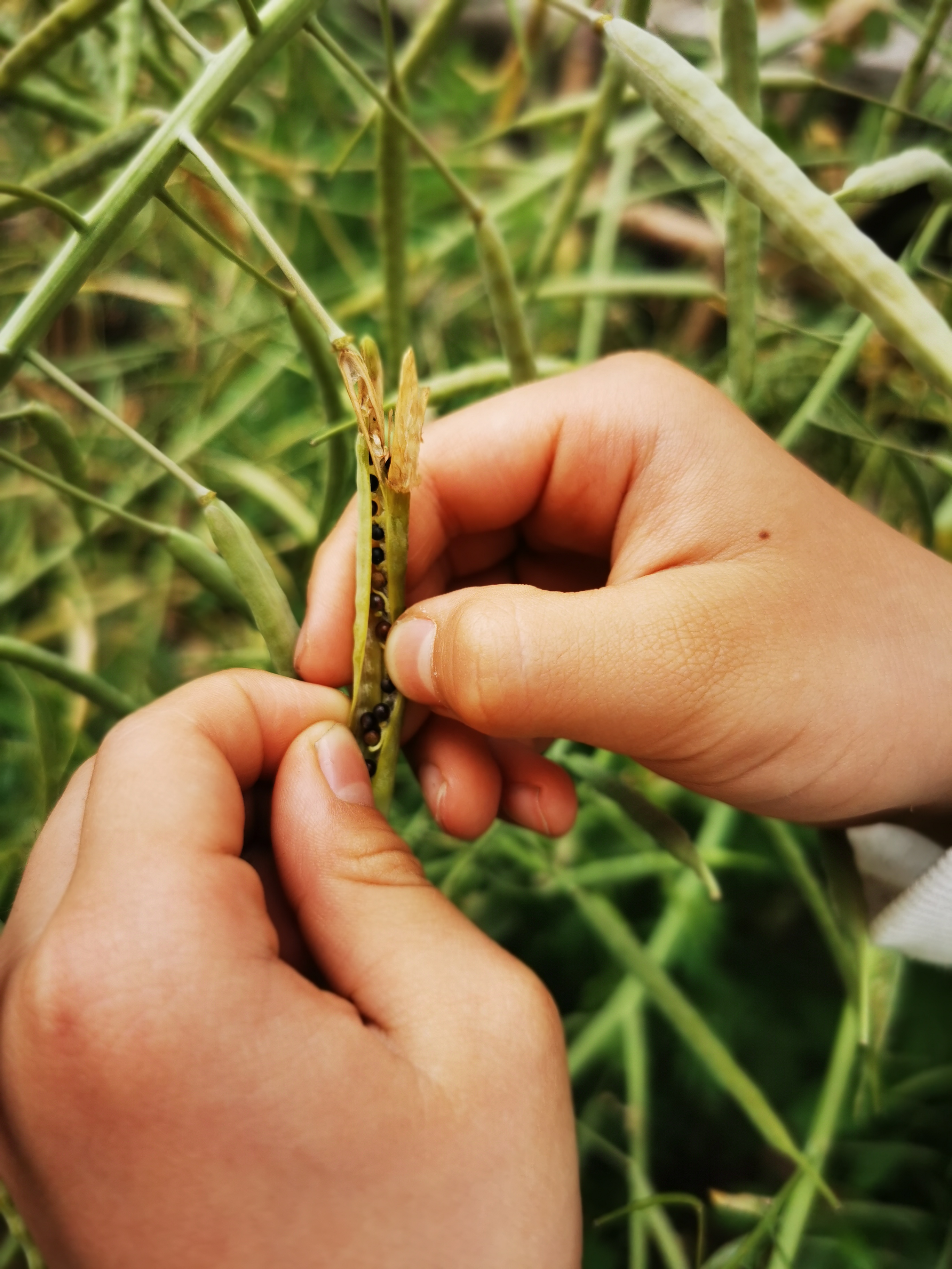 从栽种到开花再到收割,孩子们全程见证了油菜的生长过程。从一棵不起眼的小苗到鲜花盛开,孩子们享受着大自然的馈赠;如今就要丰收了,看着油菜籽硕果累累,他他们别提多兴奋了。在护理油菜的过程中,满足了幼儿模仿成人的好奇心,也感受到劳动的艰辛。