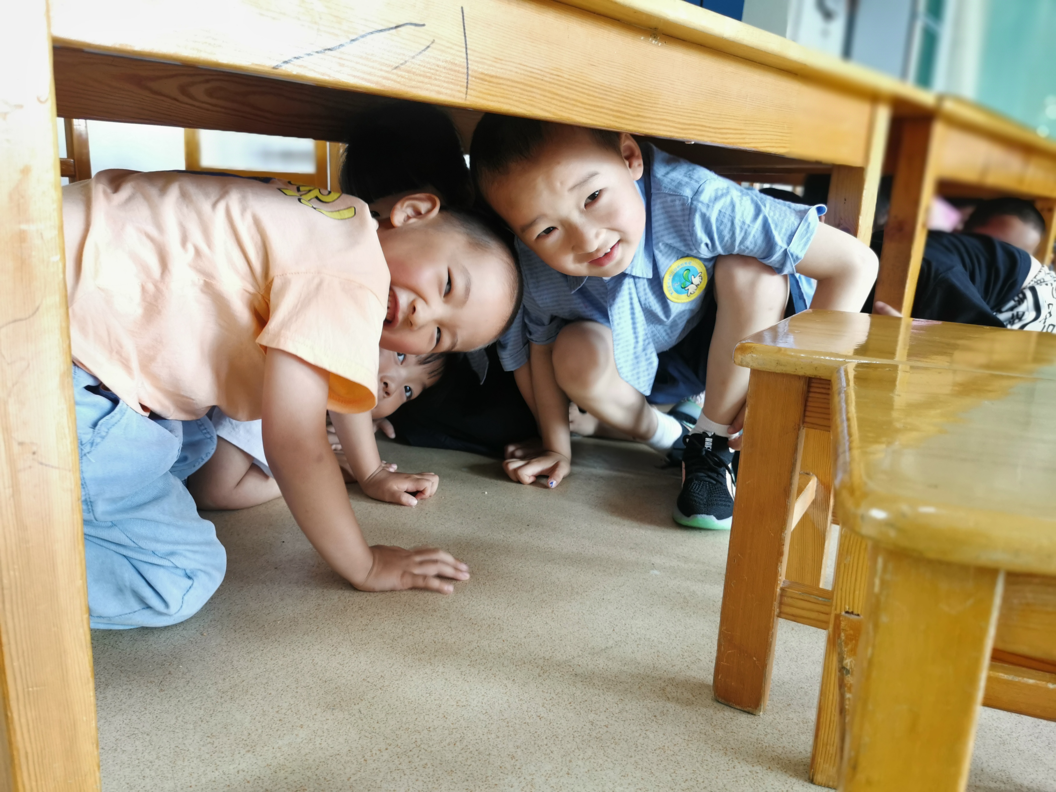 安全教育是幼儿园常态化教育内容,在集体教学中,幼儿了解到自然灾害的厉害,懂得安全逃生知识的重要性。首先,在地震刚刚开始的时候,房屋会晃动,我们引导幼儿迅速躲到桌子下面,等地面晃动稍停的时候,迅速有序的排队撤离建筑物,找一个空旷的地方抱头蹲下来,然后教师清点人数。通过本次安全演练活动,增强了幼儿的安全意识,也学会了基本的安全逃生的本领。