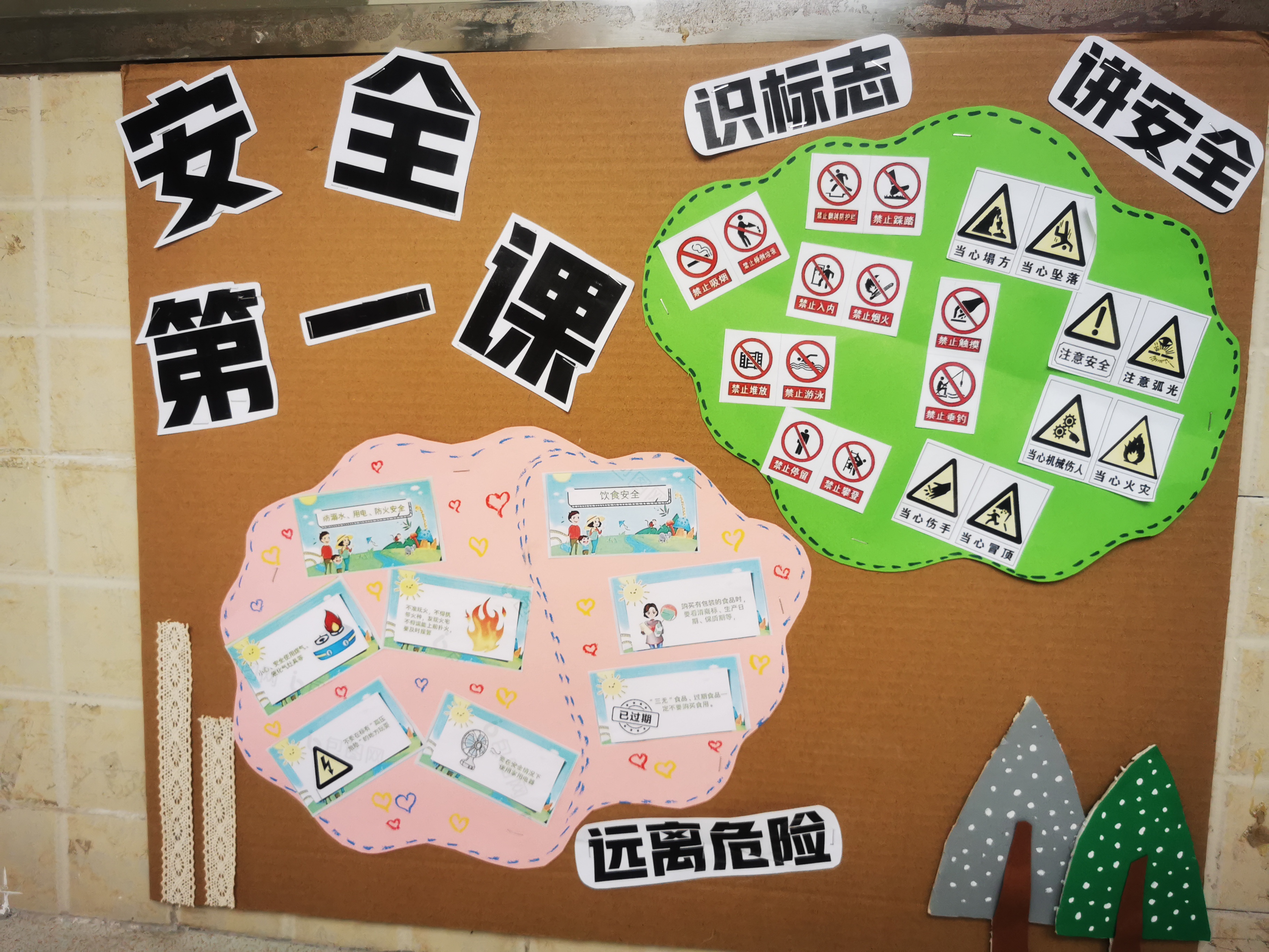 活动目标: 1、帮助幼儿认识生活中的一些常见的标志,主要认识:当心触电当心中毒禁止烟火。 2、懂得基本的安全知识知道发生火灾以后简单的自救方法,提高自我保护意识。 3、培养幼儿用已有的生活经验解决问题的能力。 活动准备:多媒体课件、安全标志图片 活动过程: 一、多媒体课件会说话的标志导入课题 师:小朋友刚才谁在说话,提醒我们注意安全(安全标志)。在我们生活的周围有许多这样的标志时刻提醒我们注意安全,所以需要我们去认识它小朋友看--它来了 (大屏幕出现标志娃娃:小朋友们好!我是标志娃娃,今天我带来了好多的朋友,它们都藏在活动室里,你们能找到它们和它们做好朋友吗?) 老师和你们一起找,你能告诉老师你是在什么地方找到的吗?是在小椅子上面还是下面找到的? 二、认识安全标志 师:小朋友我们坐下来和你的标志朋友说说悄悄话,看他叫什么?提醒我们怎么做?也可以把你标志朋友的名字告诉你的好朋友。 大家互相说一说。动脑筋想一想。(小朋友自由讨论一分钟) 现在老师请小朋友把你的标志朋友介绍给大家,让大家都来认识他 (请三个小朋友上来介绍自己的标志朋友)这么多小朋友都想上来介绍你的朋友,这样吧请大家也把你的标志朋友送到黑板上,老师和你们一起来认识。老师有一个小小的要求:请把颜色一样,形状一样的标志朋友放到一排,如果有两个一样的我们只留下一个就可以了。 (老师和幼儿一起来认识安全标志)小朋友看标志娃娃也把标志朋友请到大屏幕上来了,刚才有几个标志娃娃来晚了,我们没有认识过,你能找到吗? (幼儿寻找,老师操作多媒体找出三个标志:当心触电、当心中毒、禁止烟火) 当心触电:警示我们这里有电,危险,告诉我们小朋友不要用手摸更不能进去玩,要远离这个地方。 当心中毒:提醒我们这里的物品有剧毒,千万不能用手去摸。 禁止烟火:告诉我们这里堆放的物品都是易燃物品,禁止在这里点火,抽烟,放鞭炮。否则会发生火灾。 请小朋友思考:如果我们身边发生小火,该怎么办?(用水扑灭用脚踩灭用厚的东西压灭) 万一小火变成了大火该怎么办呀?(立即告诉大人,打火警电话119等) 如果放生火灾以后我们被困在屋子里该怎么办?(用湿毛巾湿衣服把门缝堵住不让浓烟进屋子,然后打开窗户,拿出最鲜艳的衣服大声呼喊:救命呀!人们听到喊声就会来就你。 我们看大屏幕上的朋友是怎么做的?(出示大屏幕让幼儿模仿用湿布堵住嘴弯腰逃离火场的办法)今天老师和小朋友认识了这么多的安全标志。还知道了发生火灾以后怎么办?我们不仅保护了自己而且还要学会帮助别人。 三、结束部分:参观安全图片展览今天小朋友表现的都很棒,以后小朋友平时要注意观察你生活的周围还有那些标志,提醒我们该怎样做?我们这里还有一个标志图片展览,老师带你们去参观一下,以后我们也要做小小设计师,来设计更多的标志。 四、活动延伸:为幼儿园设计标志