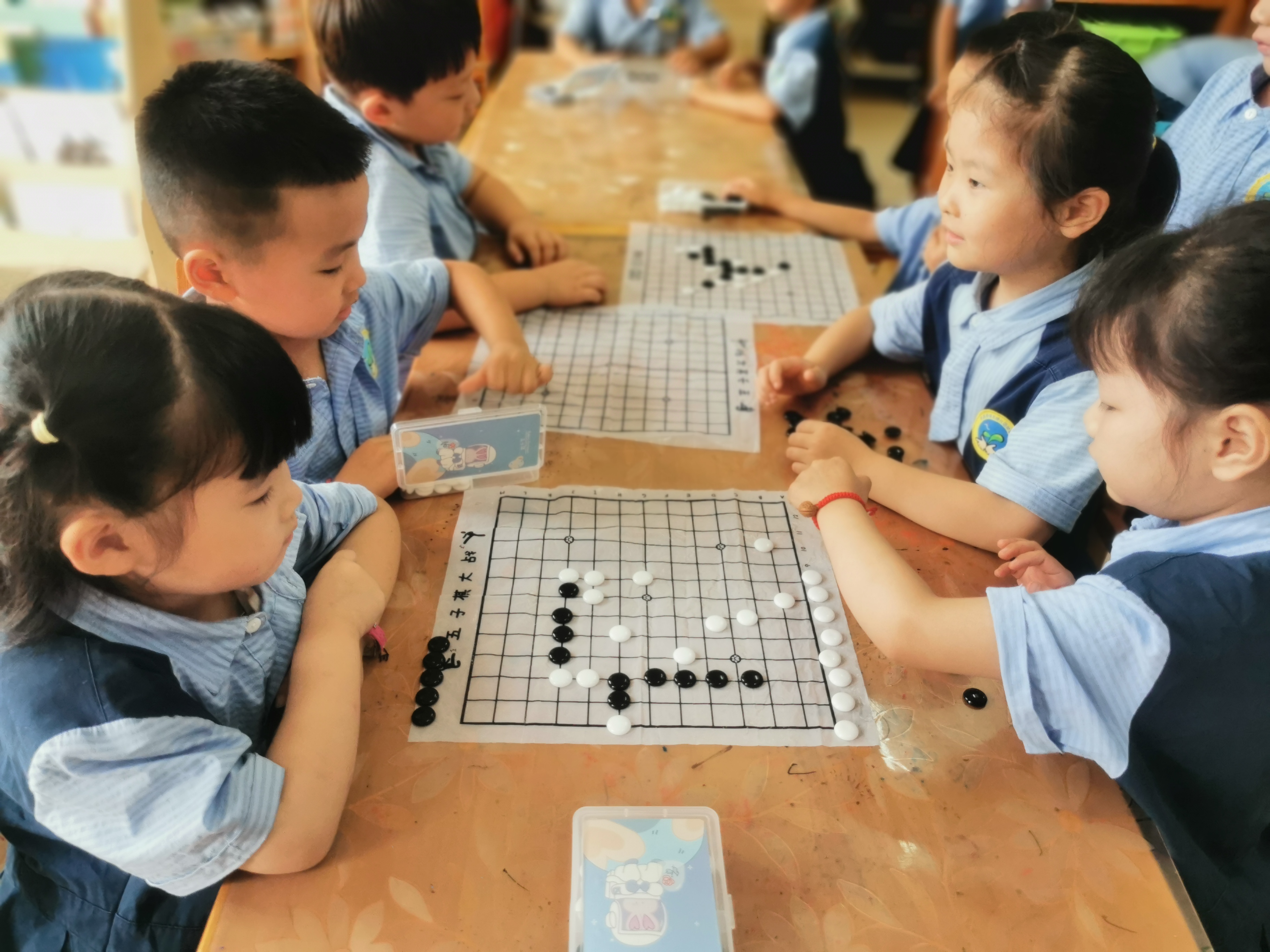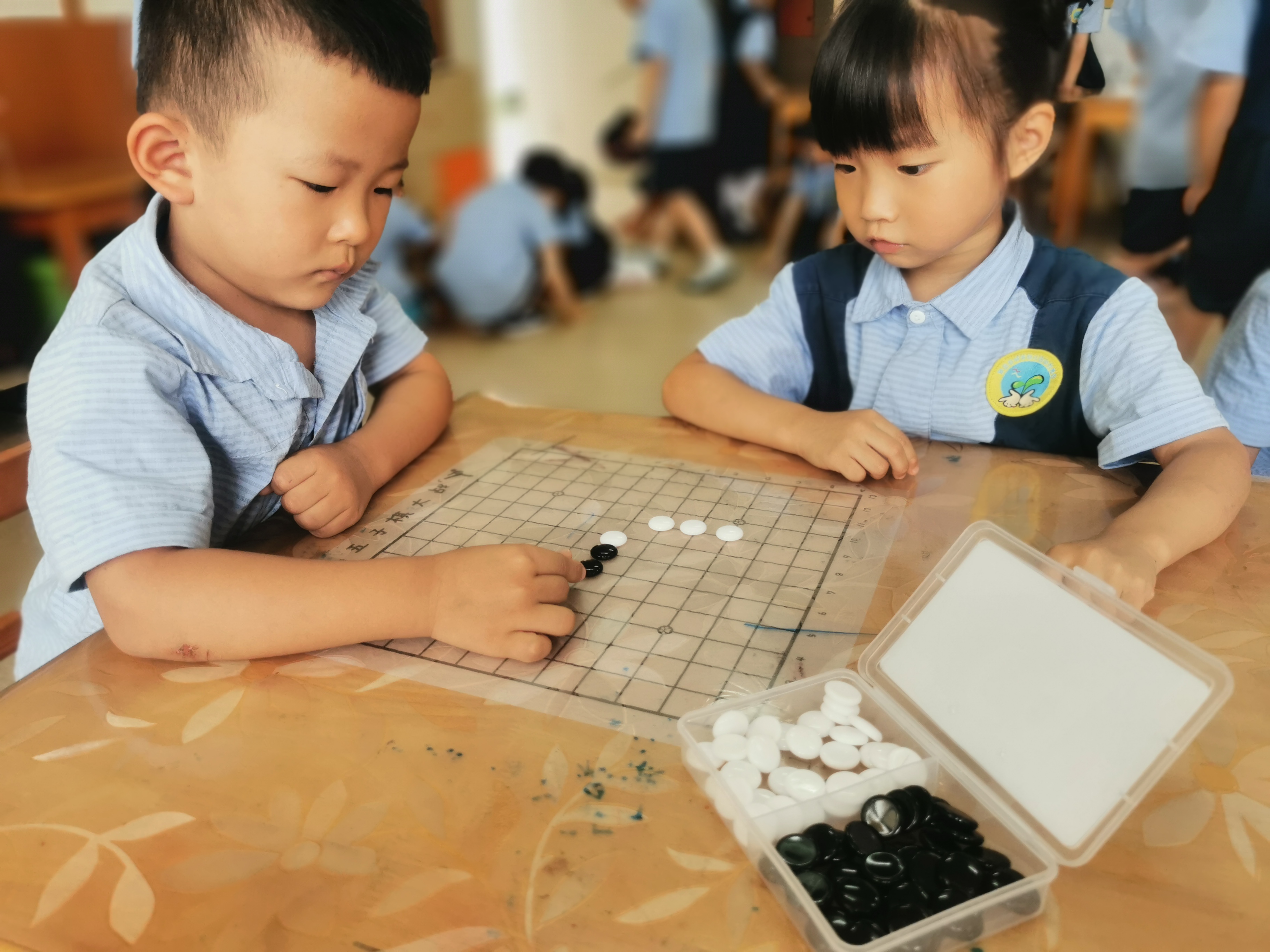 为了丰富班级的益智区,我们班引进了五子棋,孩子们都非常喜欢,每次区域游戏的时间总能看到孩子们津津乐道的对弈。下棋对孩子的好处有很多,六岁之前的孩子最适合简单易操作的五子棋。五子棋是一种纯策略型的棋类游戏,容易上手,而且趣味横生,引人入胜。 首先五子棋能让孩子养成能静的习惯。我感觉学棋后我们班大部分孩子注意力的集中时间有所提高。 其次能适当培养孩子的挫折感。现在小孩最缺的就是挫折感,其实培养小孩子的挫折承受能力也是非常重要的,由于小孩子比较小,培养的过程只能是逐步的。 再次培养孩子的数学能力。因为在下棋中会思考到很多如果和假设,五子棋很注重的逻辑思维,有时候往往要预先想上好几步,而且有时候还要逆向思维。 五子棋对开发孩子的智力,提高记忆力。下棋是一项高级的智力游戏,能够开发孩子的智力,提高记忆力,对逻辑思维、耐心有明显的帮助。通过学棋,可以形成一种独特的思维方式。锻炼脑力和体力。下棋是需要深思熟虑的脑力和体力劳动,能培养孩子静心思考的好习惯和独立解决问题的能力。 五子棋还可以培养孩子的独特的思维方式。下棋是相对高级的智力游戏,从游戏中开发孩子的智力,提高记忆力,培养耐心,对逻辑思维有很好的帮助。 现在孩子们不但在幼儿园下五子棋,还把棋子带回家,和家长亲子对弈,减少了孩子在家玩电子产品的时间,家长也纷纷拍手叫好。
