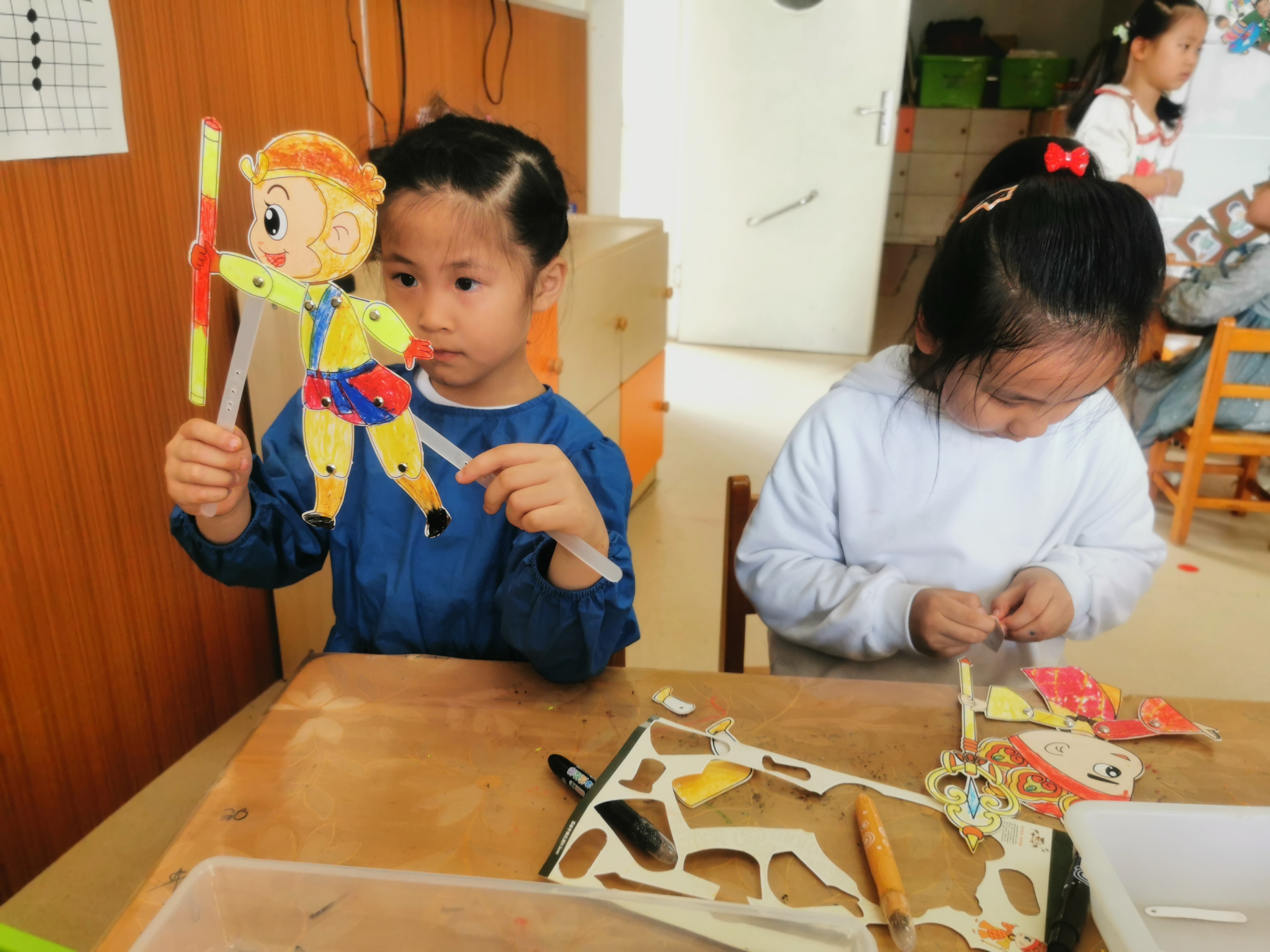 在幼儿园的公共游戏区我投放了一个皮影小剧场,皮影戏操作性强,皮影表演对于场地要求简单,表演人数有限。我们幼儿园的角色游戏区都具备这样的软硬件条件。皮影人物造型逼真,表演极富感染性。皮影戏能以生动的人物肢体表述展现故事的发展演变,非常容易激发幼儿的学习和关注兴趣。对于简单的皮影表演,也可以由儿童分组来完成。皮影表演艺术要求表演团队集皮影的操控,音乐伴奏,曲艺的演唱于一体,多人协同进行,这样的团队化配合有利于培养幼儿的责任感和团结互助精神,有利于塑造幼儿非功利性审美价值和审美人格,有利于培养孩子的奉献精神和对于情感等的掌控力。在整个皮影戏的操作过程中,孩子的智力、动手能力、协调掌控力等都得到了全面的训练和协调发展。皮影艺术涉及的艺术门类较多,是一项综合性的艺术形式,皮影艺术引入幼儿教育必将极大的丰富幼儿教育的内容。皮影制作过程中的绘制、雕刻、着色等工艺可以丰富幼儿美术课程,皮影表演,舞蹈等可以强化孩子对于音乐的感知力。简单的皮影制作在锻炼孩子的逻辑思维和动手能力方面具有非常重要的价值,制作工艺的逻辑性可以有效的激发孩子的左脑潜质,让孩子在不知不觉中丰富自己的思维能力,提升自己的智力水平。 皮影戏主要可以作为幼儿园游戏中的一项进行展开。在游戏设计和实施中应当主要规划和把控好以下几个步骤。 (一)要以观看为游戏展开的前提。由于处在特殊的年龄阶段,幼儿对于事物的学习一般是从模仿开始,所以对于皮影戏的接触应当从观看开始。《三打白骨精》《猪八戒吃西瓜》等皮影戏内容生动易懂,又不失童趣,这些经典的皮影戏可以深深的吸引幼儿的求知欲和模仿力。老师可以给幼儿简单介绍皮影戏的知识,让幼儿从宏观上对皮影戏有个大致的印象,随着皮影戏观看的进行,幼儿一定会被这种特殊的艺术形式所吸引,他们会忍不住去摸一摸,看一看,这时候只要老师稍加引导,幼儿参与热情就会非常高涨。 (二)皮影戏内容要贴近幼儿特点。幼儿观看的皮影戏不宜过于复杂,不管是在场景设计还是故事情节的展开,或者在人物构建上都应该充分进行考量,以幼儿的视角去设计表演人物和表演内容。皮影戏内容还可以以幼儿熟悉的游戏或影视等为蓝本,尽量贴近孩子的生活。老师还可以将适宜幼儿水平的经典幼儿文学作品改编成皮影戏,在保留皮影艺术风格的基础上对皮影表演形式进行探索、突破创新。 (四)让孩子近距离接触皮影制作过程。亲身感受皮影人物的诞生过程。当然,皮影的制作工艺较为复杂。在课堂教学中,我们可以探索采用一些较为轻质柔软的材料代替皮影的实际材质来让孩子们制作皮影人物。在制作中,教师本着熏陶、启迪为出发点的原则,使幼儿在互动合作中不断建构丰富的知识、经验,也为幼儿走进更多优秀民间文化打开了一扇亮窗。 文化传承是人类文明得以不断延续的重要途径,皮影戏作为一种传统民俗文化,促进这种文化的传承和发展既是我们当代的责任,同时也具有深远的意义。皮影戏的教育价值开发尚处在初级的探索阶段。任何的艺术形式都是一个民族,一个国家人文与历史的积淀。保护传统文化就是保护民族本身。皮影戏在教育领域的推广与深化,既是传统文化传承的需要,又是深化教育内容,倡导素质教育的需要。我们要让传统文化在现代教育中绽放出绚丽的花朵。